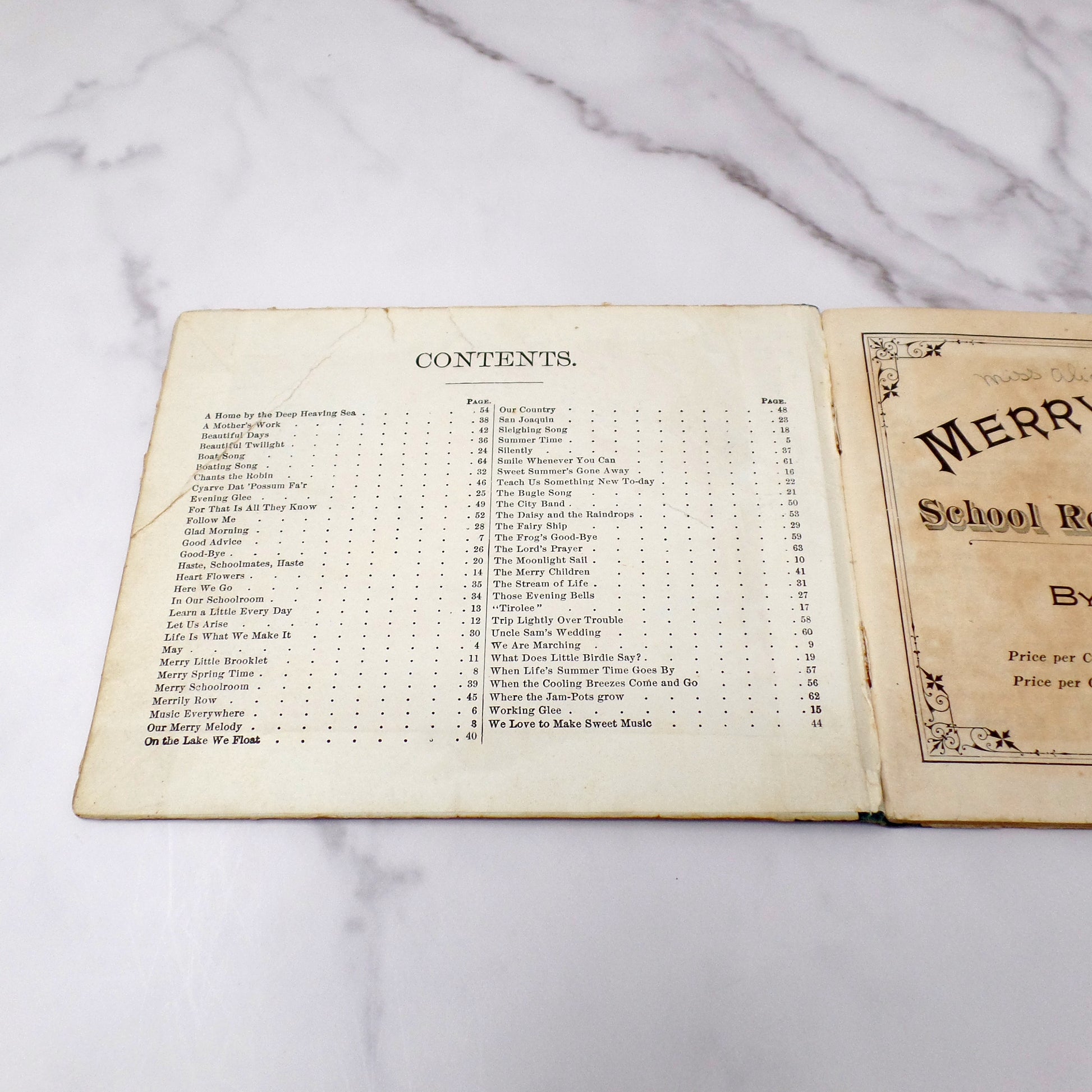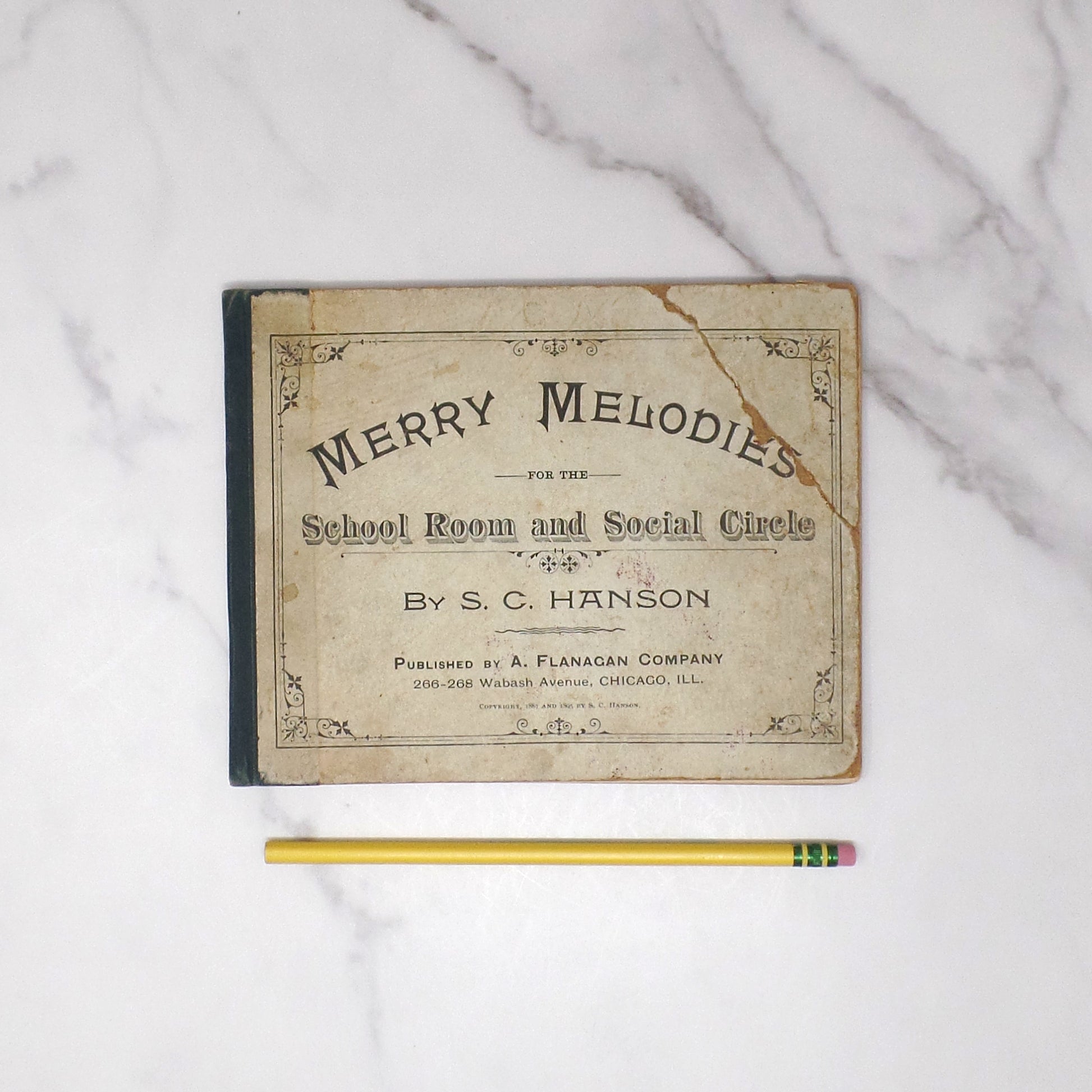 Antique book, Merry Melodies for the School Room and Social Circle by S.C. Hanson. Printed in the USA in 1895.