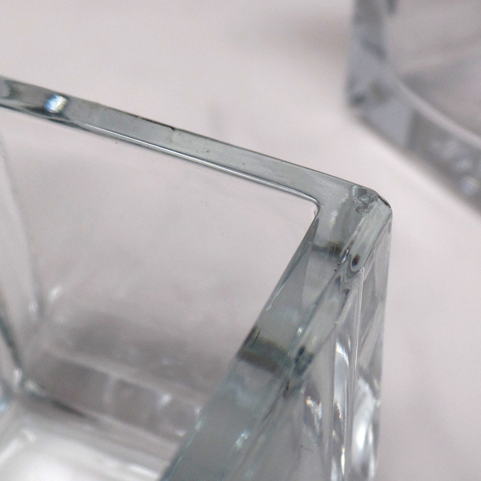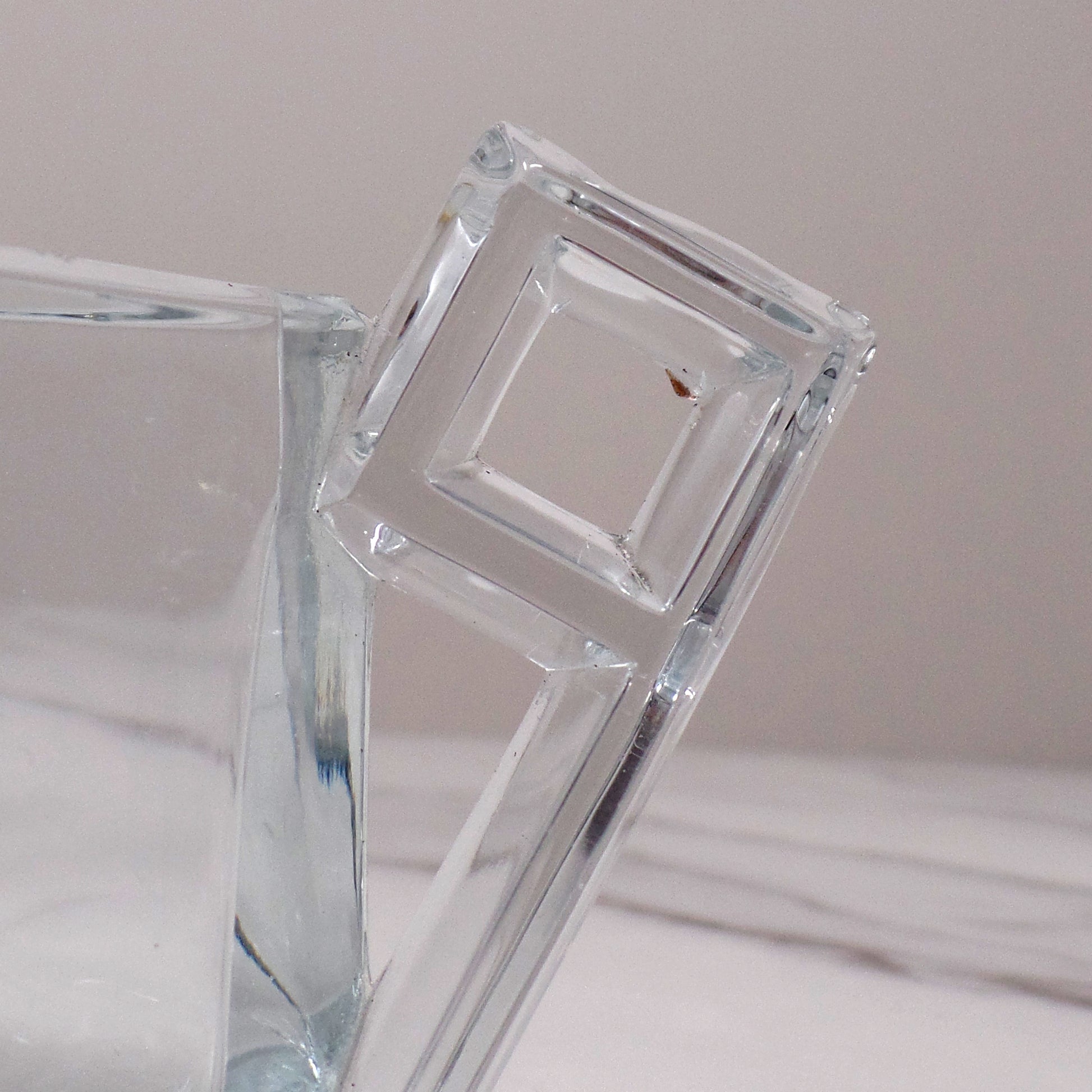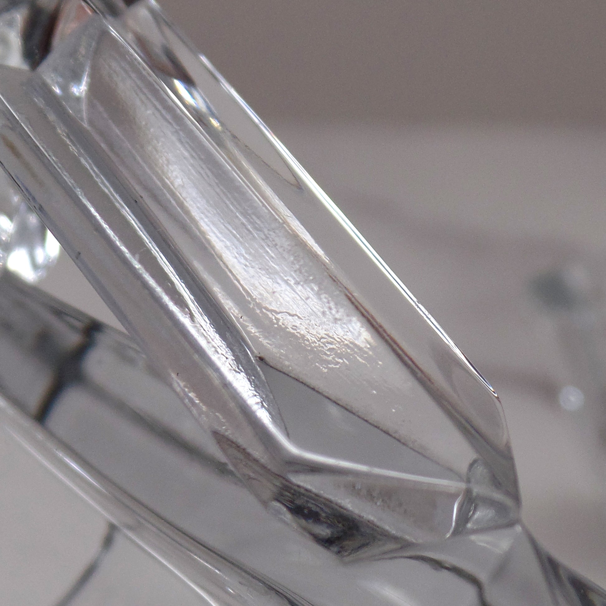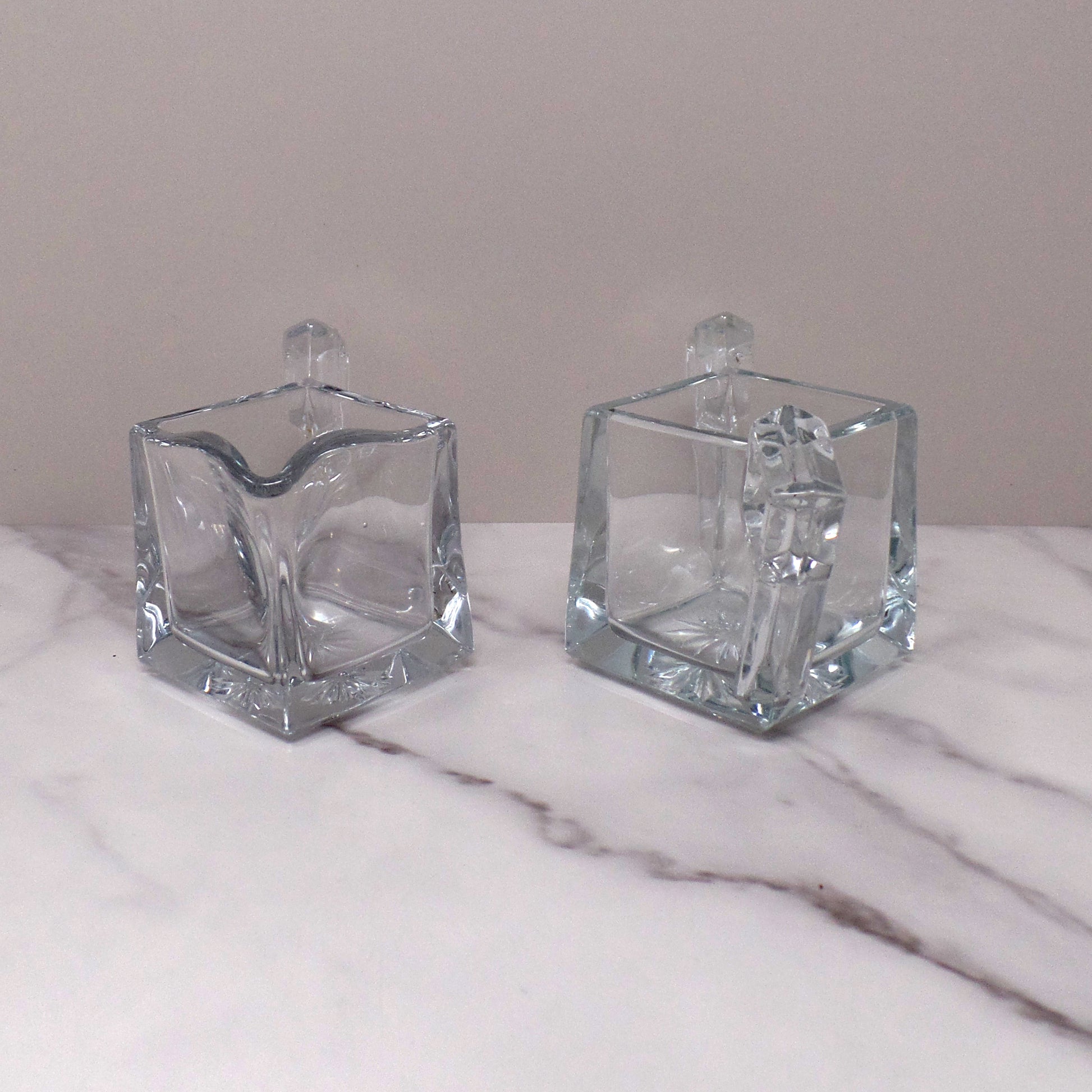 Antique Heisey glass Quator cream and sugar set. Made in the USA, circa 1912. Good vintage condition: There is a small scuff on the lower handle of the creamer. The sugar bowl has a small chip on the corner and two spots of scuffing along the top edge (see detail photos).