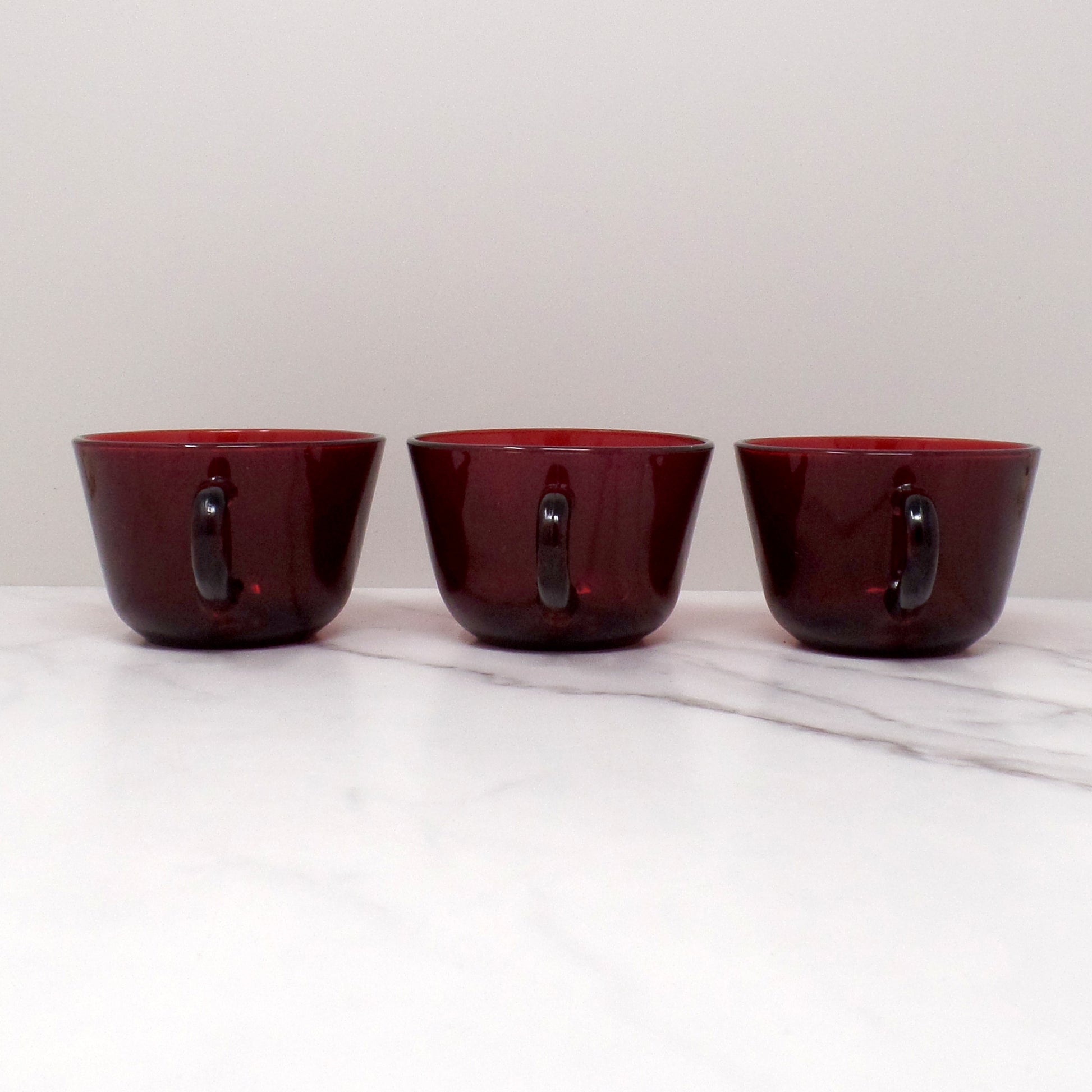 Vintage Anchor Hocking Royal Ruby Red Glass Mugs, set of 3 (1960s)