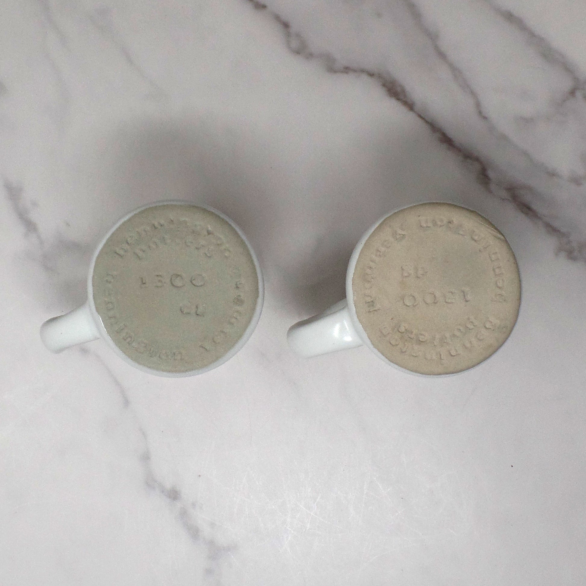 Two vintage ceramic 1300 coffee mugs by David Gil from Bennington Potters' early work circa 1960. Handmade in Vermont, USA.