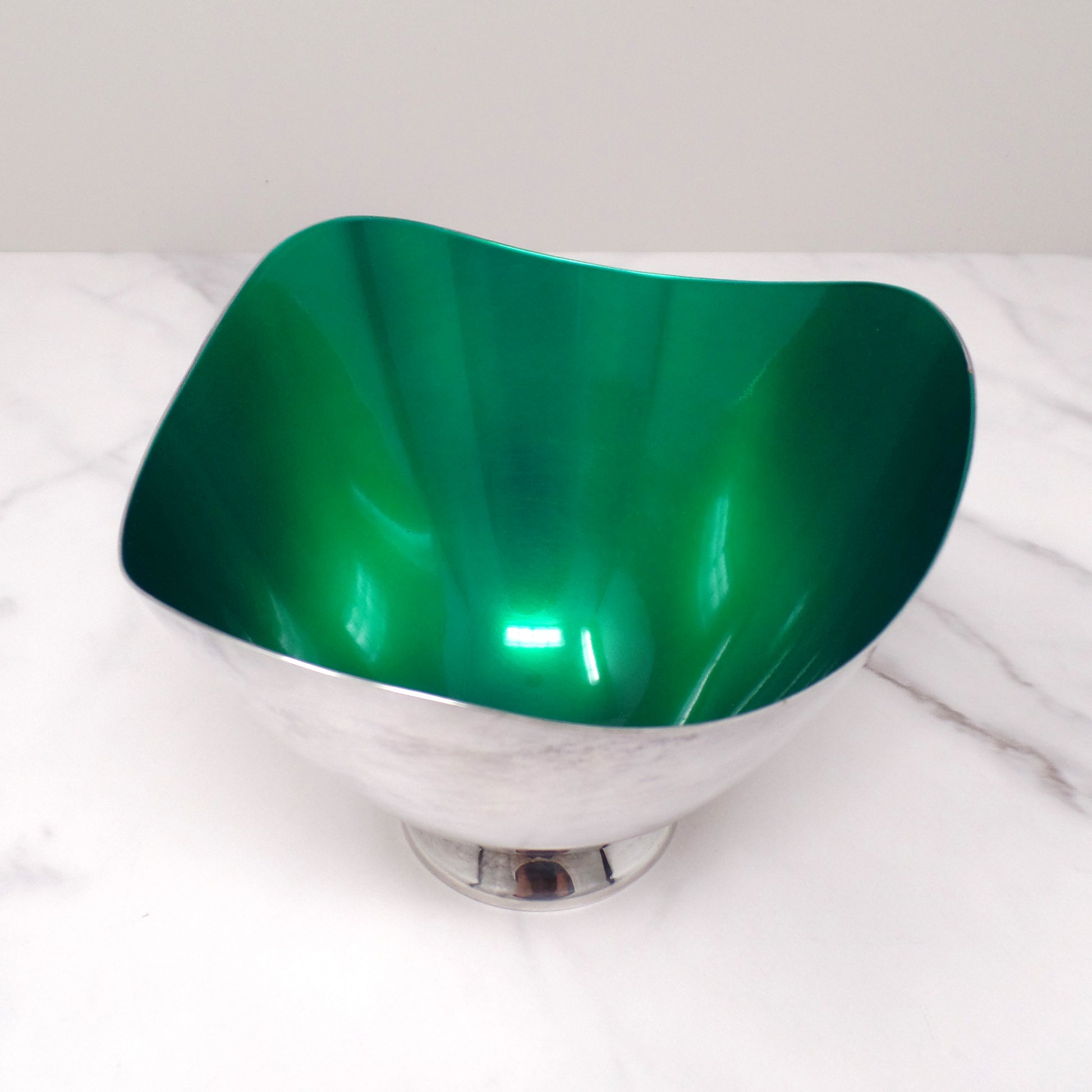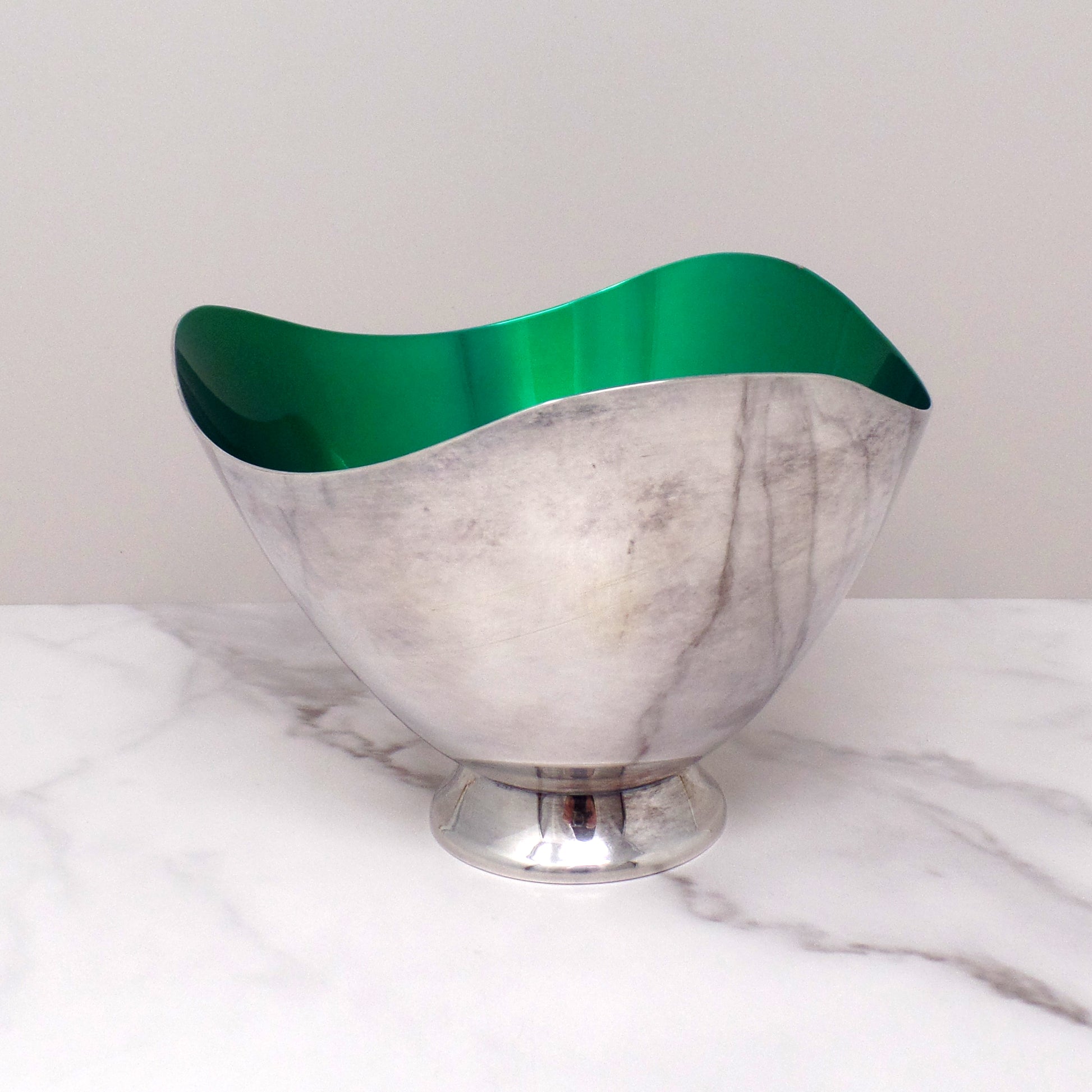 Vintage Carl Christiansen Green Enamel Silverplate Wave Bowl (1960s)