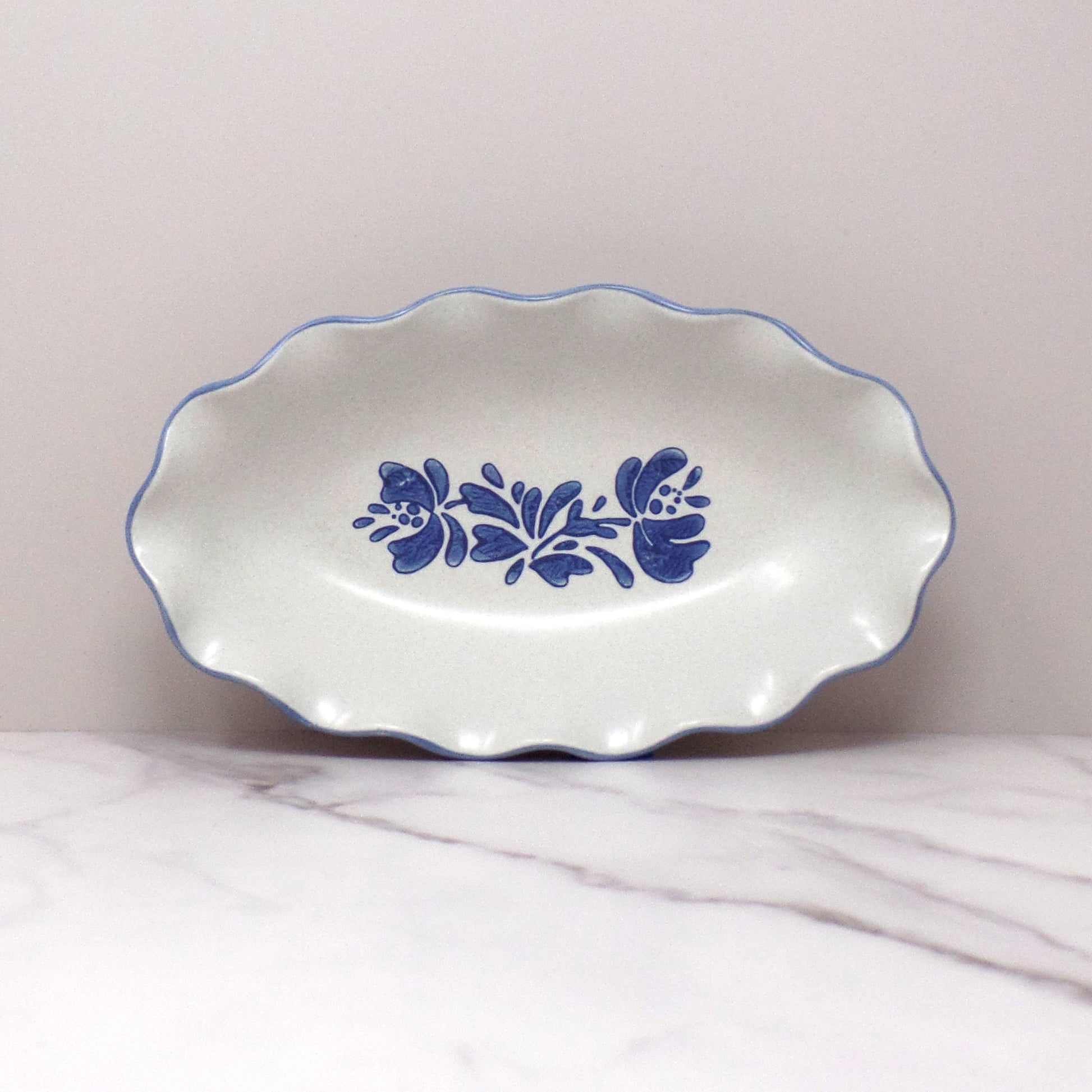 Vintage ceramic fluted relish bowl from Pfaltzgraff in the Yorktowne pattern. Made in the USA in the 1980s-1990s, it is in excellent vintage condition. No chips, cracks, scratches, utensil marks, or crazing on glaze.