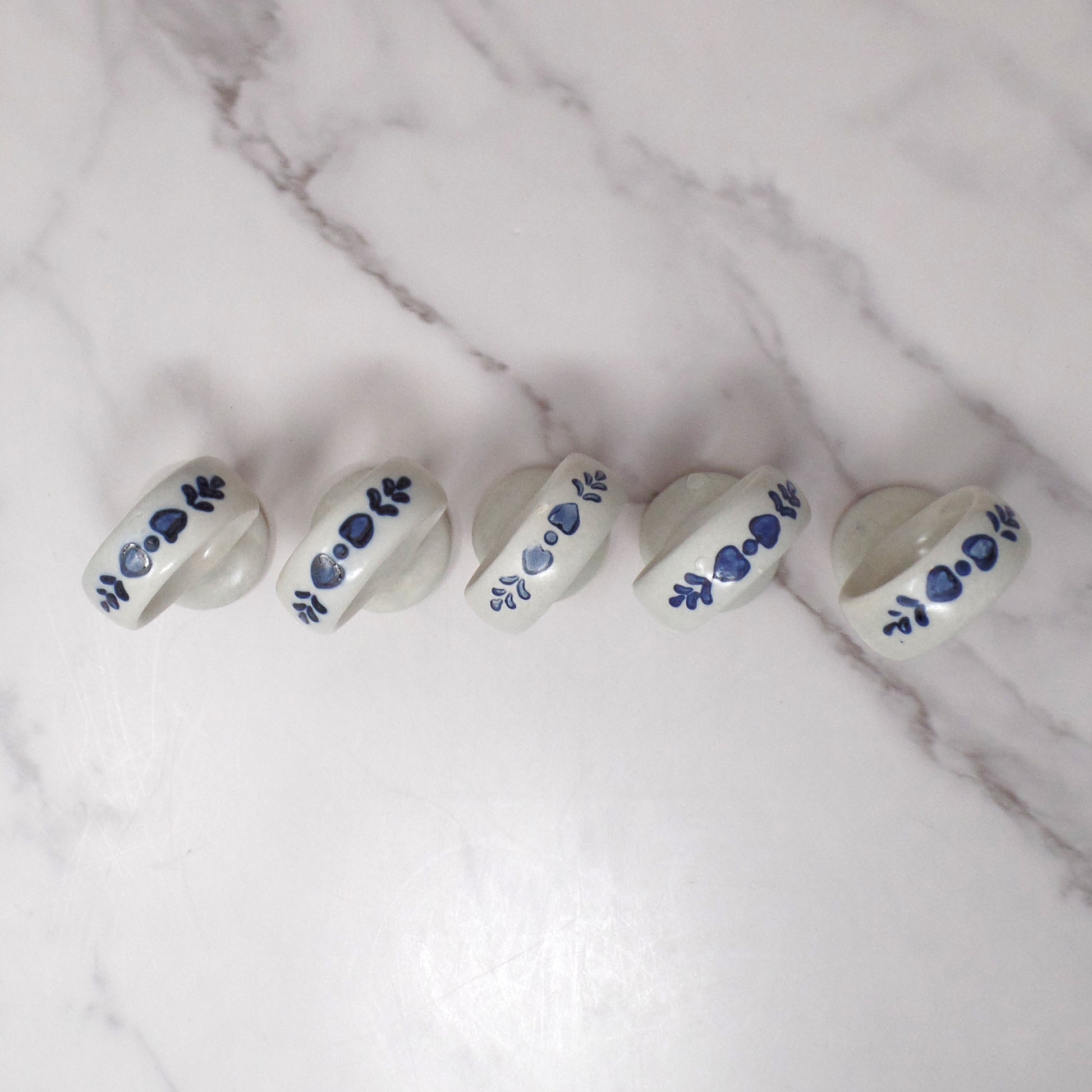 Vintage Ceramic Pfaltzgraff Yorktowne Napkin Rings, set of 5 (1980s-90s)