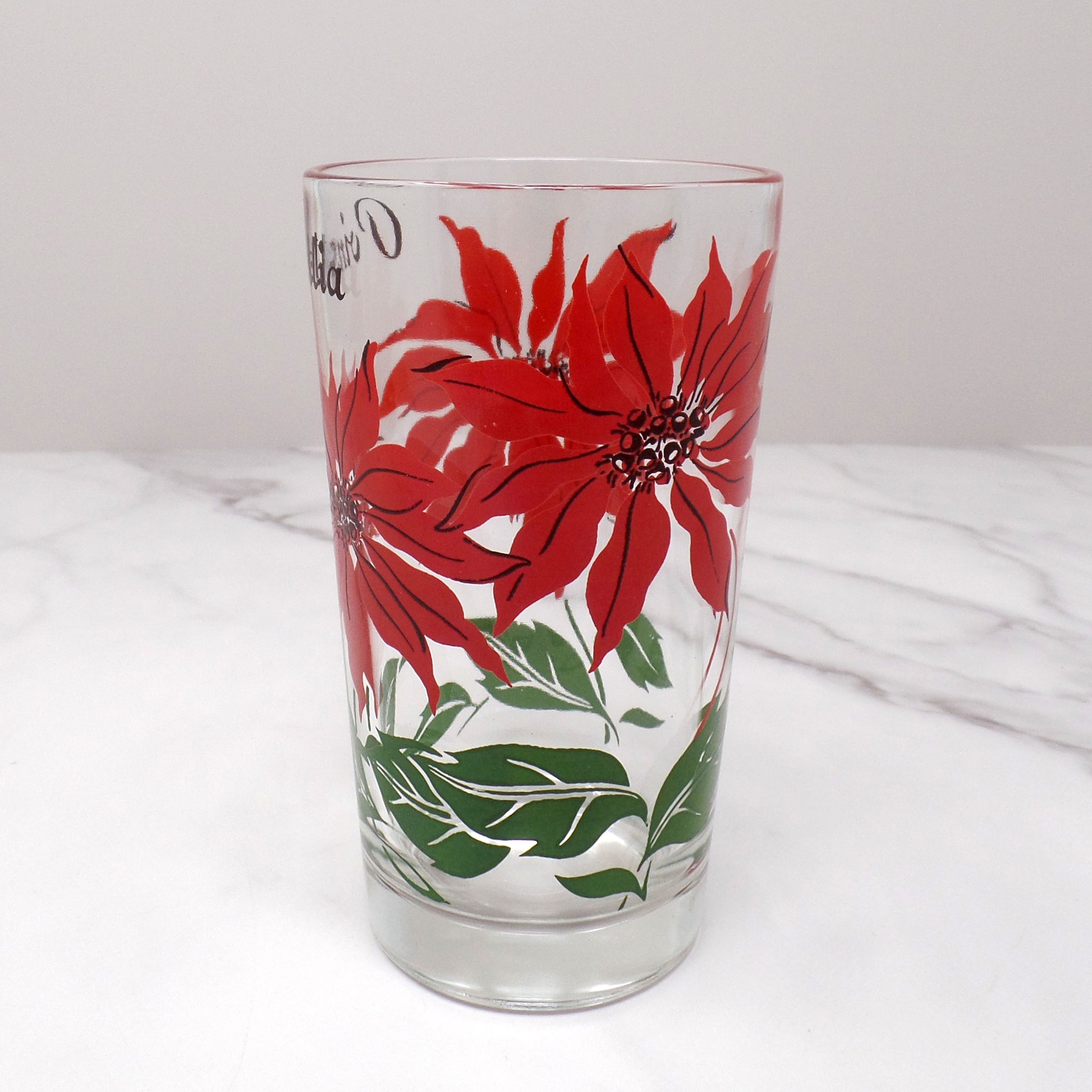 Vintage Christmas Poinsettia Highball Glass (1960s)