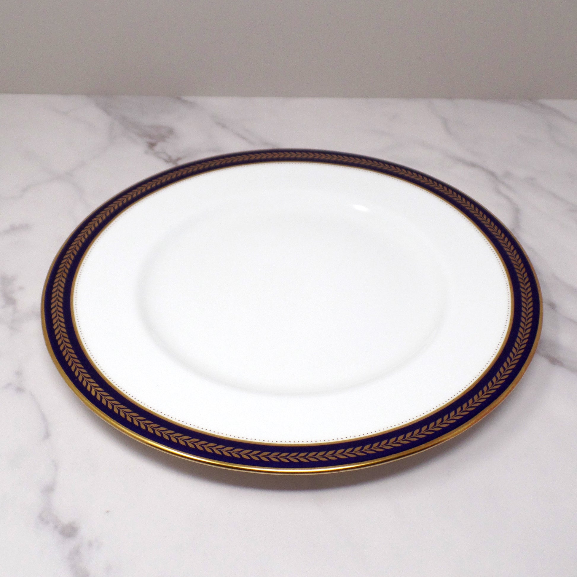 Elegant vintage Coalport bone china Blue Wheat 10 3/4" dinner plate. Vibrant and deep cobalt blue band with gold edging and pattern. Made in England in the time period of 1972-93. In very good vintage condition.