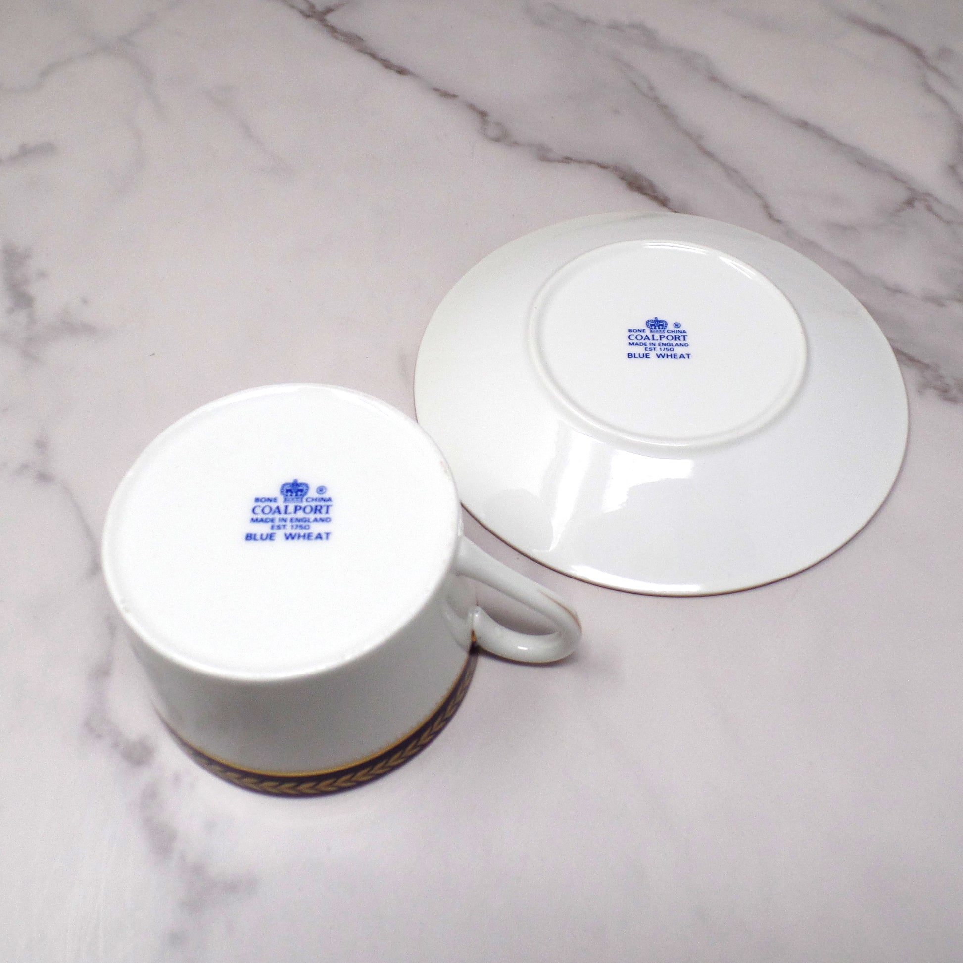 Vintage Coalport Bone China Blue Wheat Flat Cup and Saucer (1972-93)