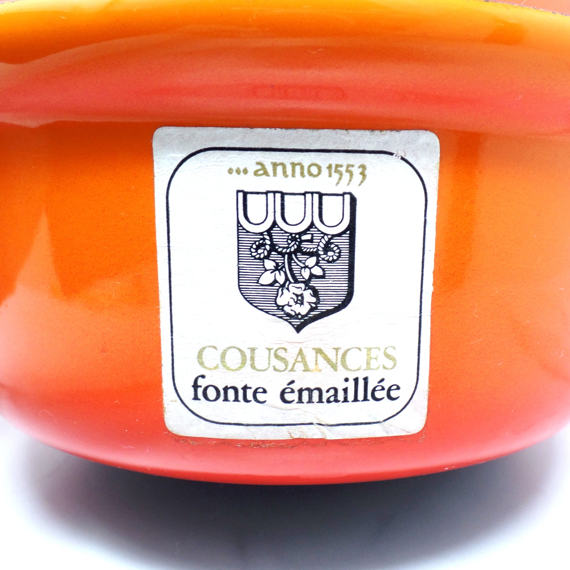 Vintage Cousances enameled cast iron multipurpose No. 18 sauce pan with skillet lid. Made in France, probably in the 1960s. Cousances was the first cast iron foundry in the world, founded in France in 1553. In 1957, Cousances was acquired by Le Creuset, who continued to make Cousances as a line until the early 1980s.