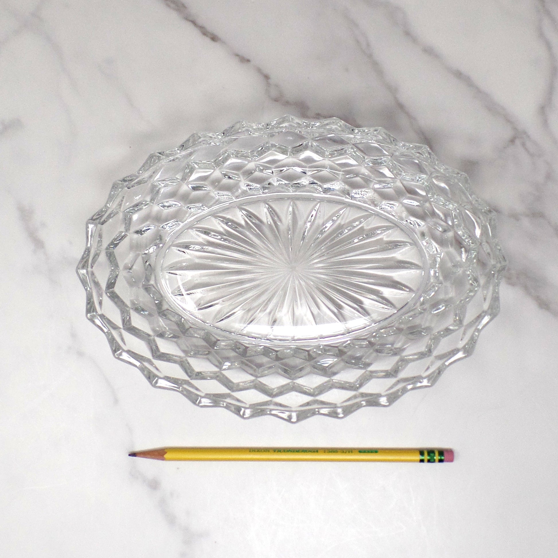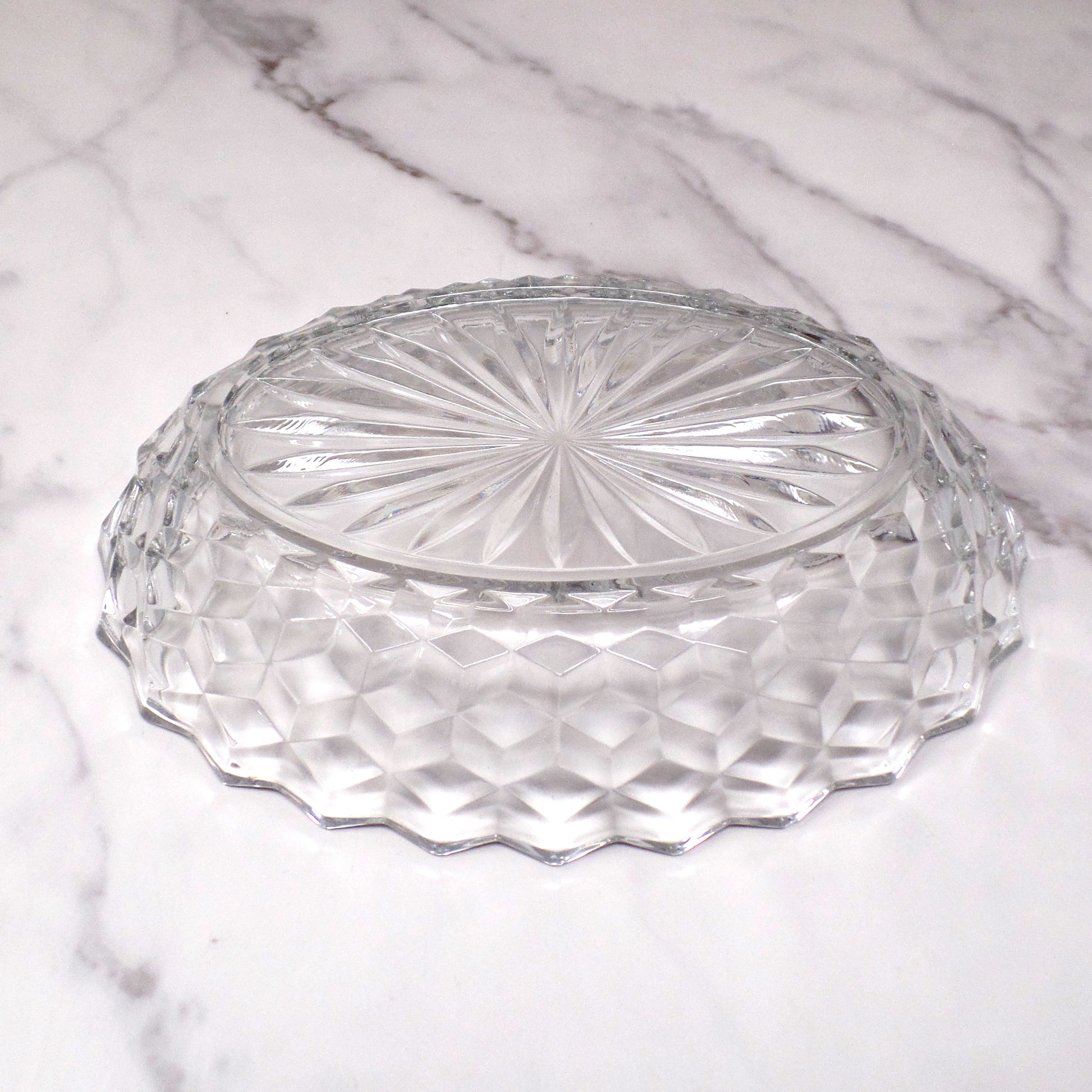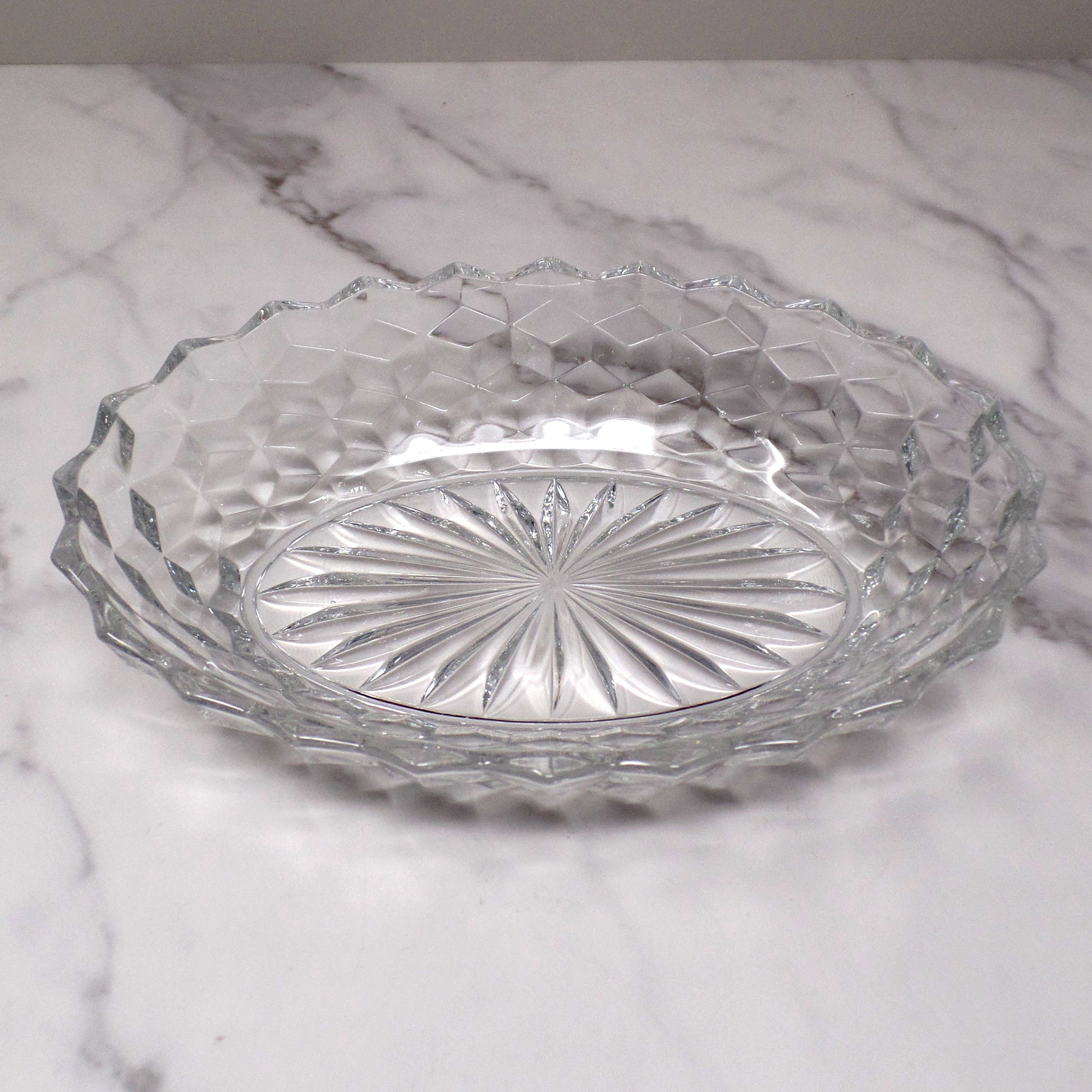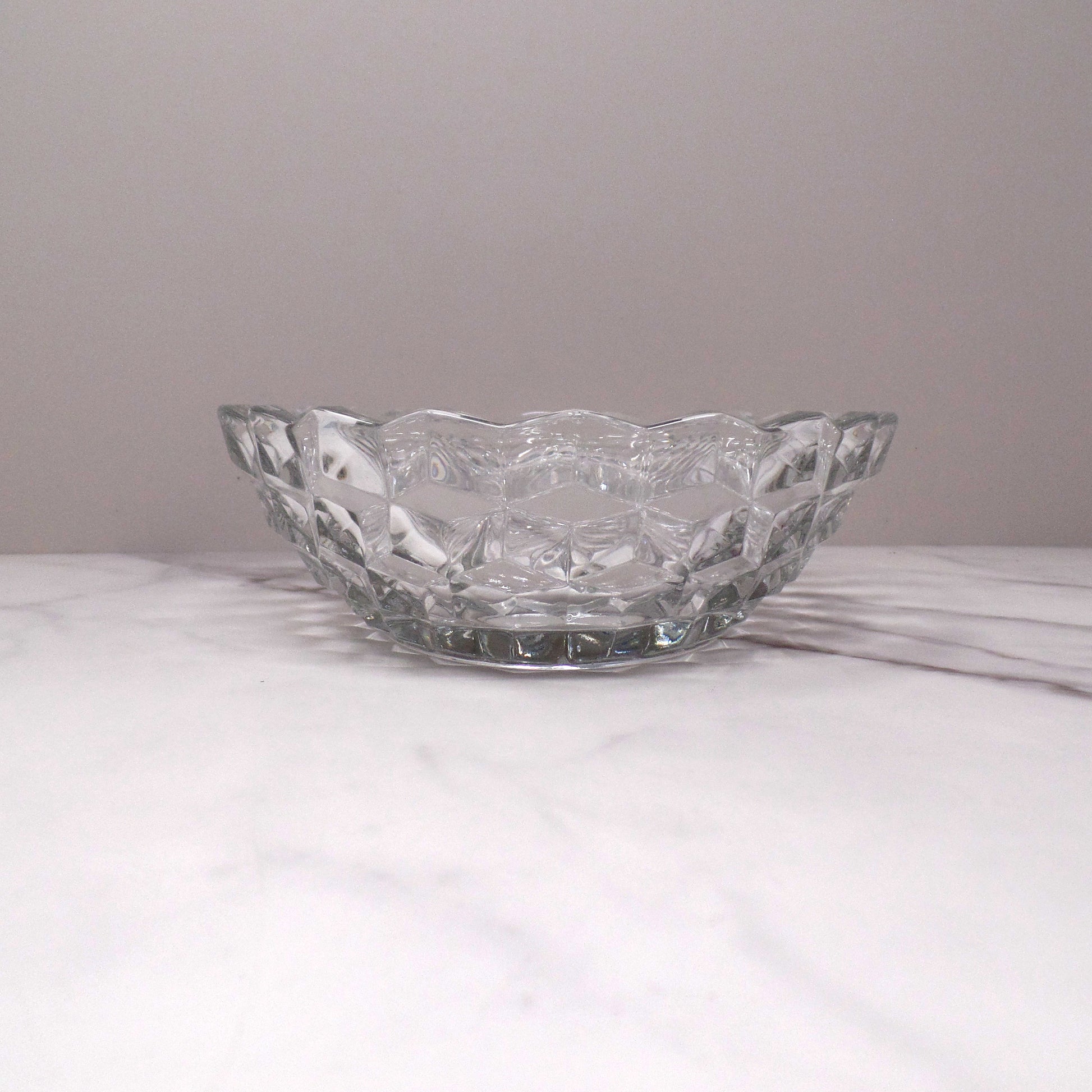 Made in the USA, exact date of production unknown. Fostoria produced their popular American Clear crystal from 1915-1982, and these vegetable serving bowls were produced from 1939-1982.