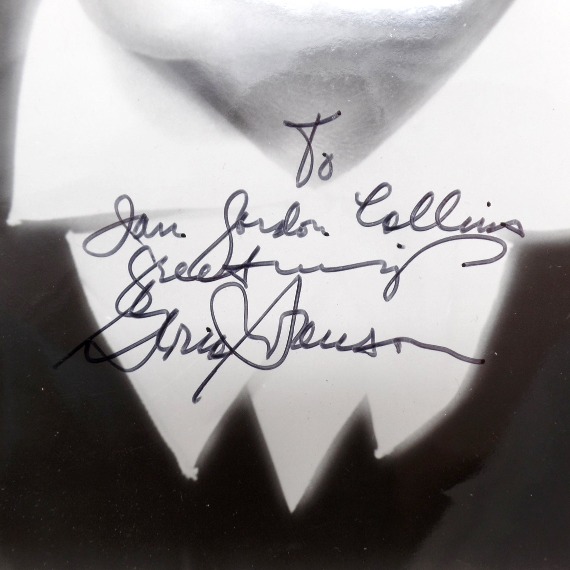 Autographed Gloria Swanson 8 x 10 photograph in good vintage condition. Date unknown, but probably the 1960s or 70s. There are a few small fold-lines, particularly on the corners (see detail photographs). Very clear writing and signature.