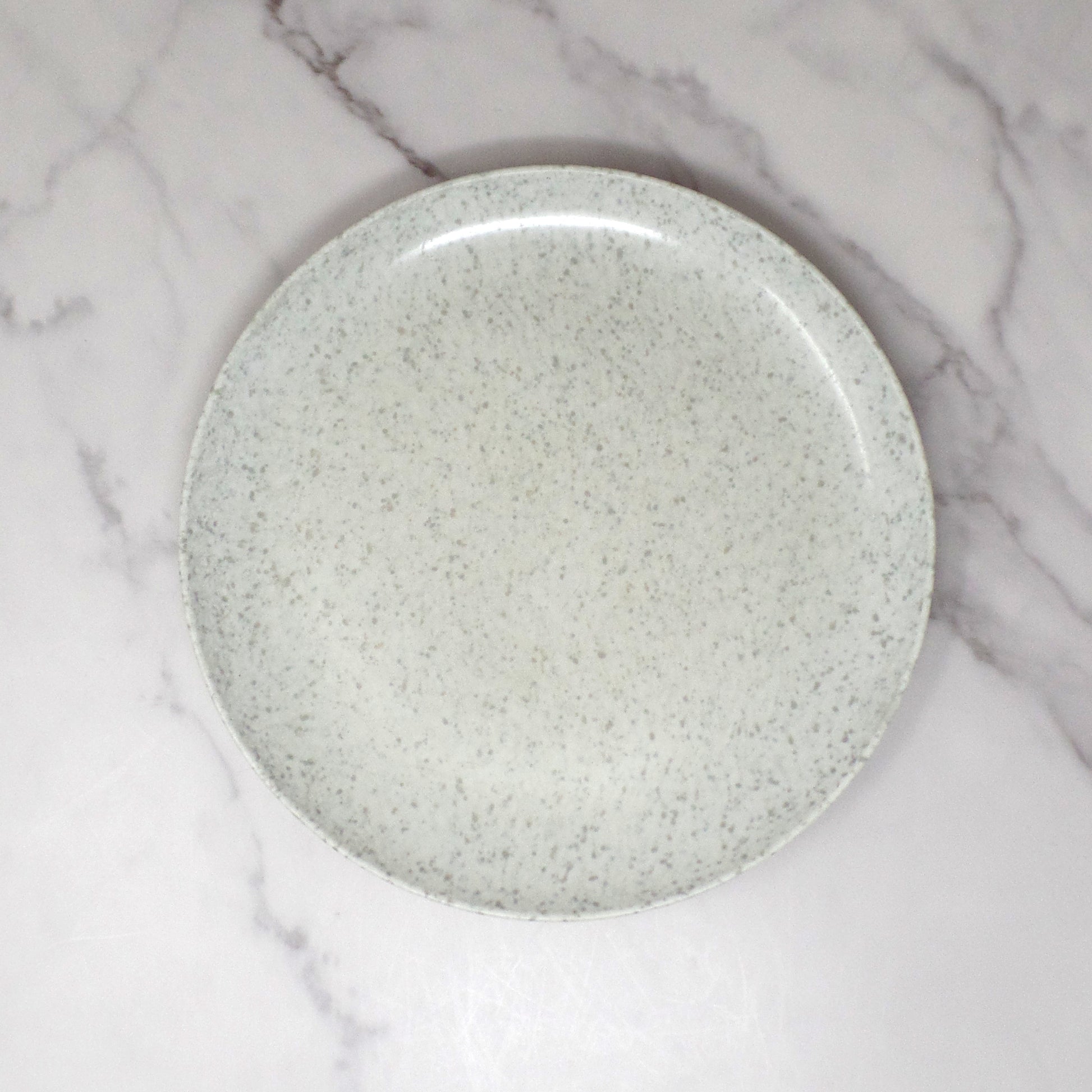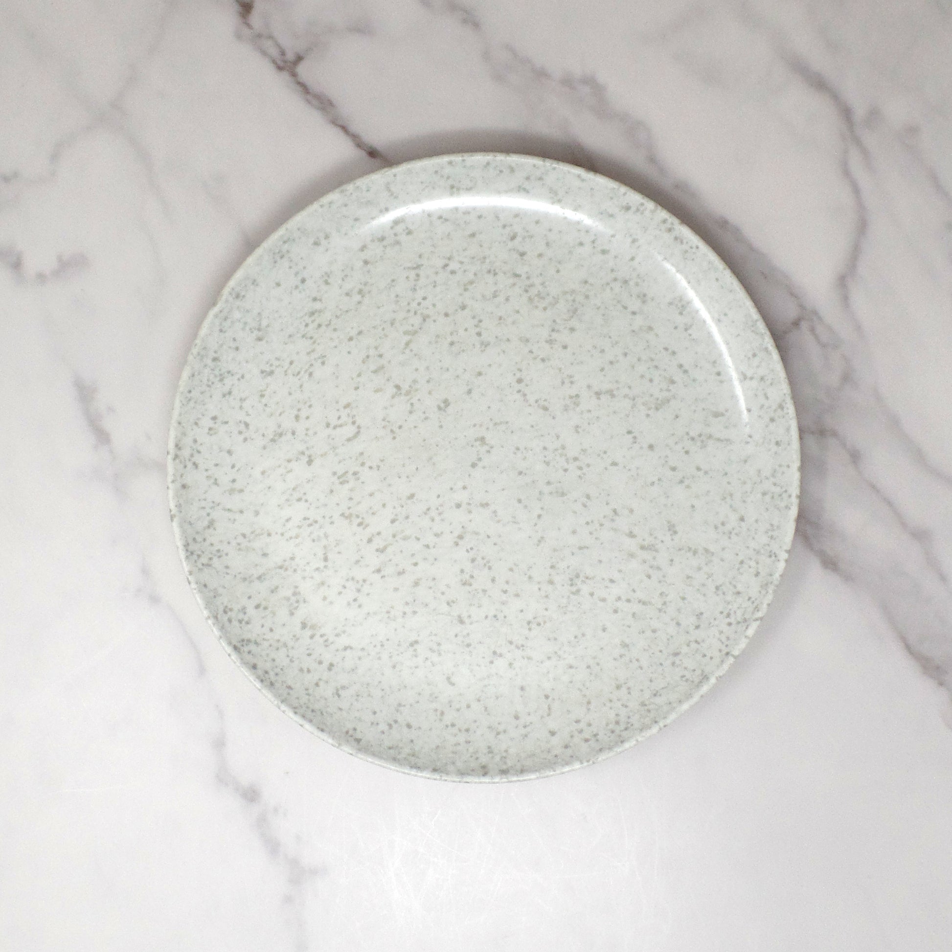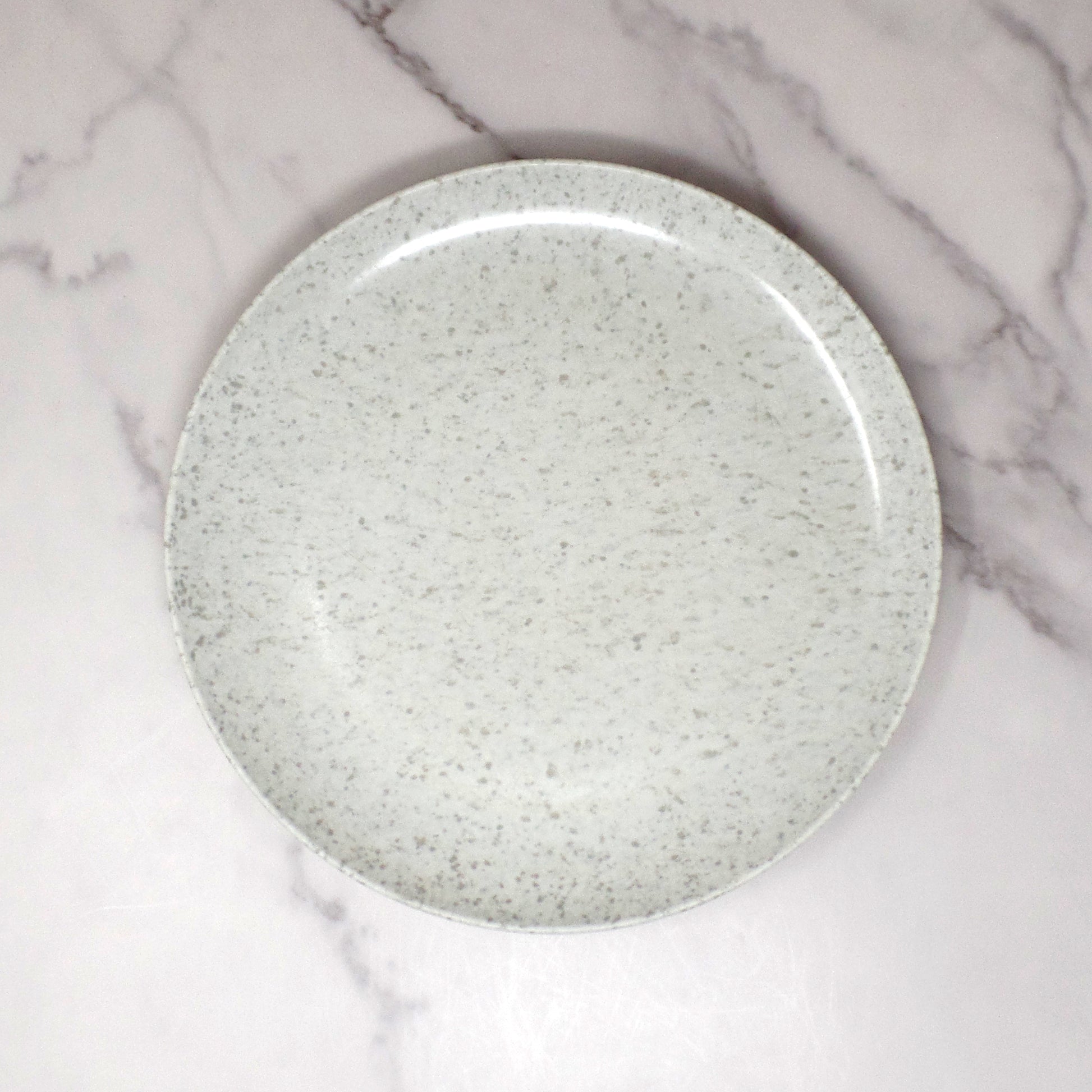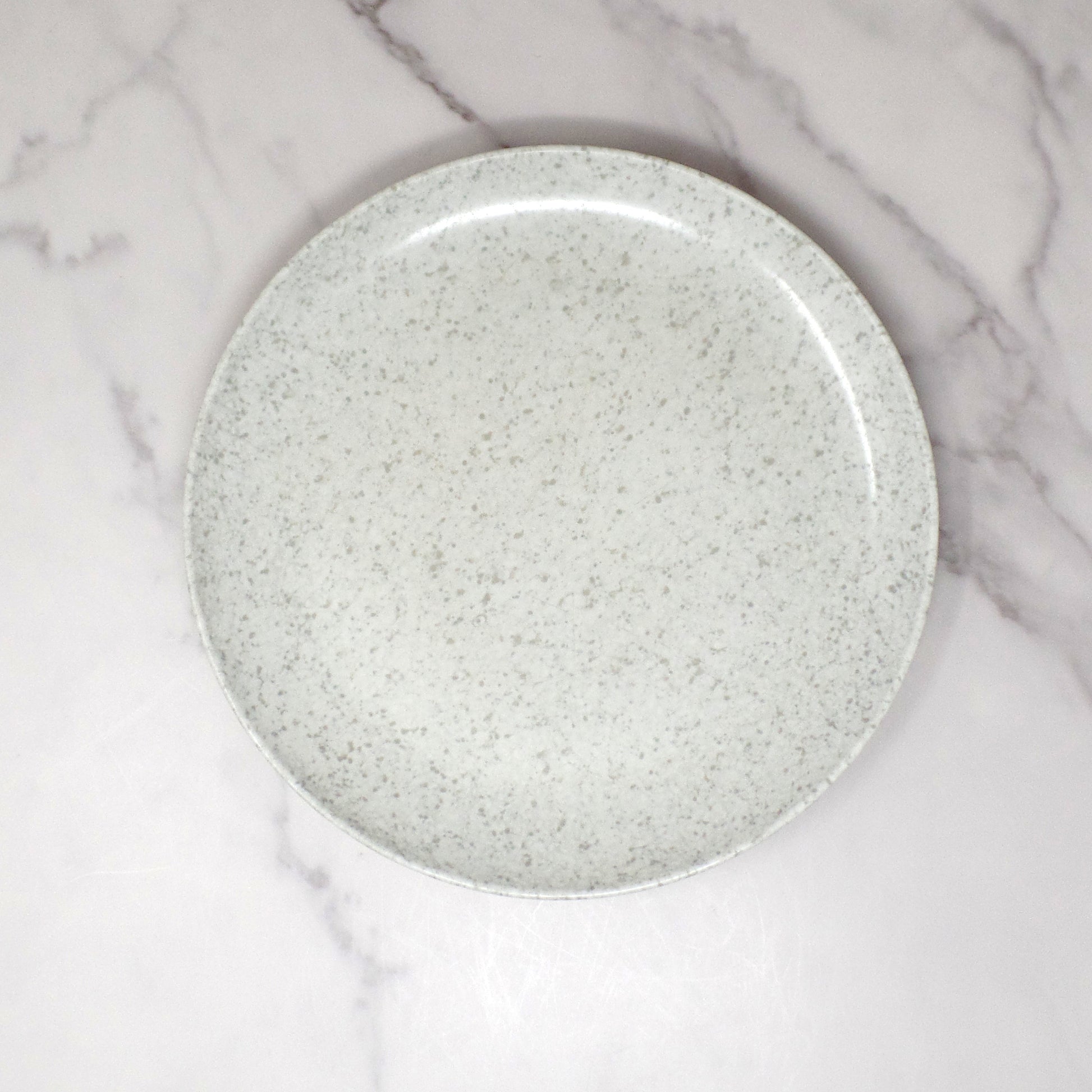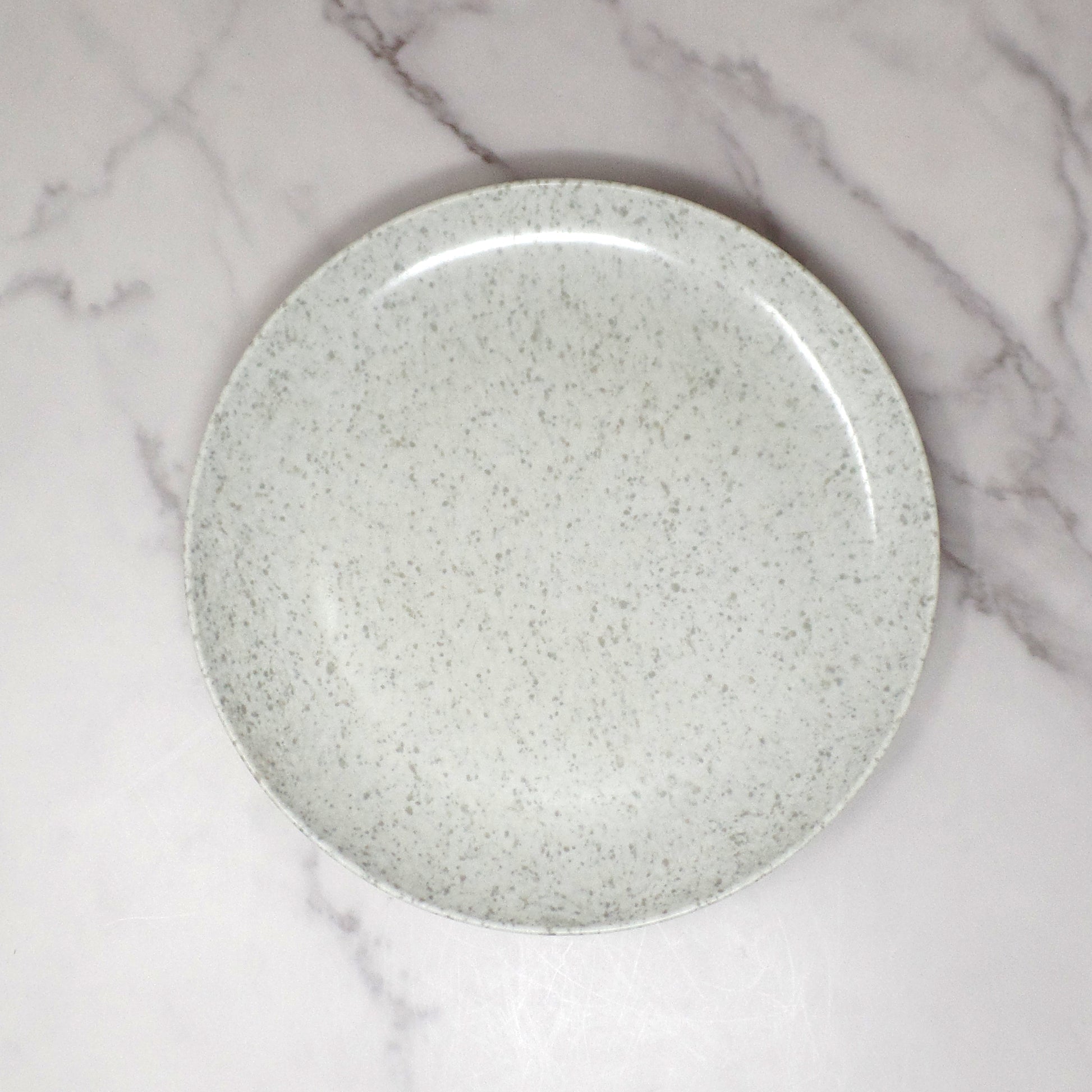 Vintage Joan Luntz Gaiety Melmac / Melamine 10” Dinner Plates, Speckled White & Gray - set of 6 (1950s)