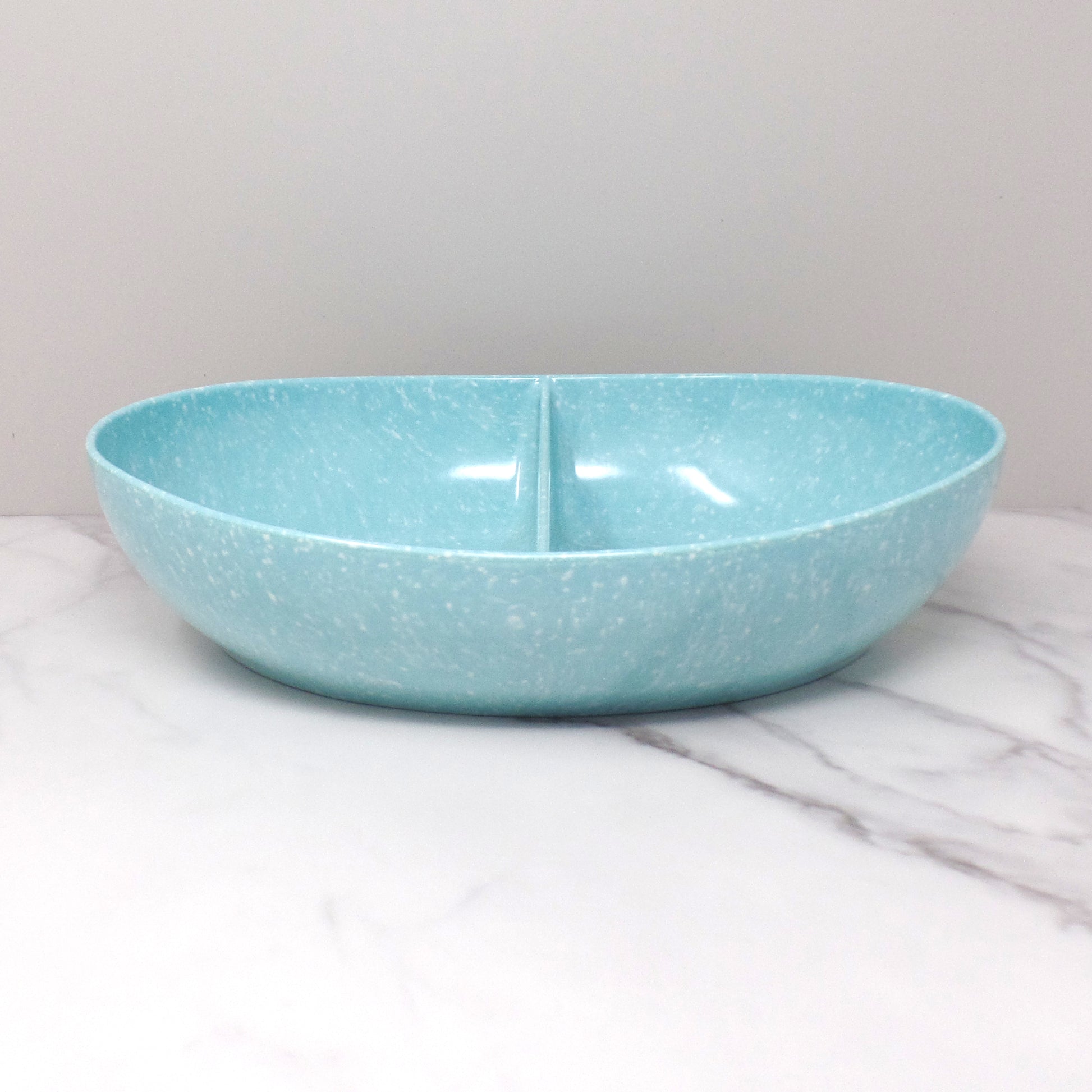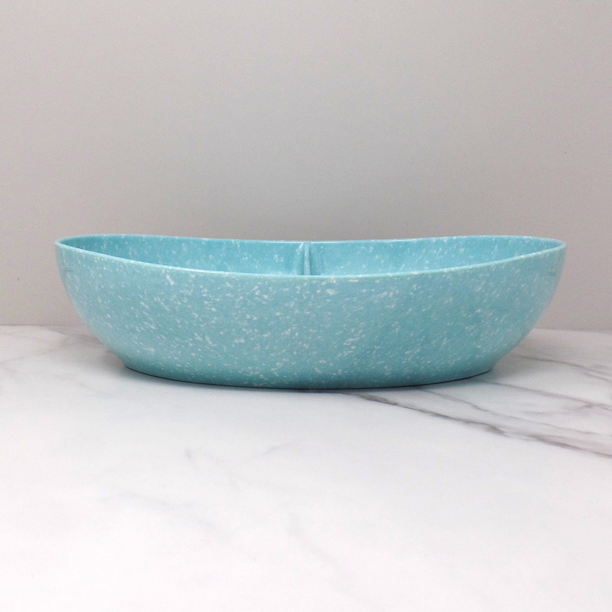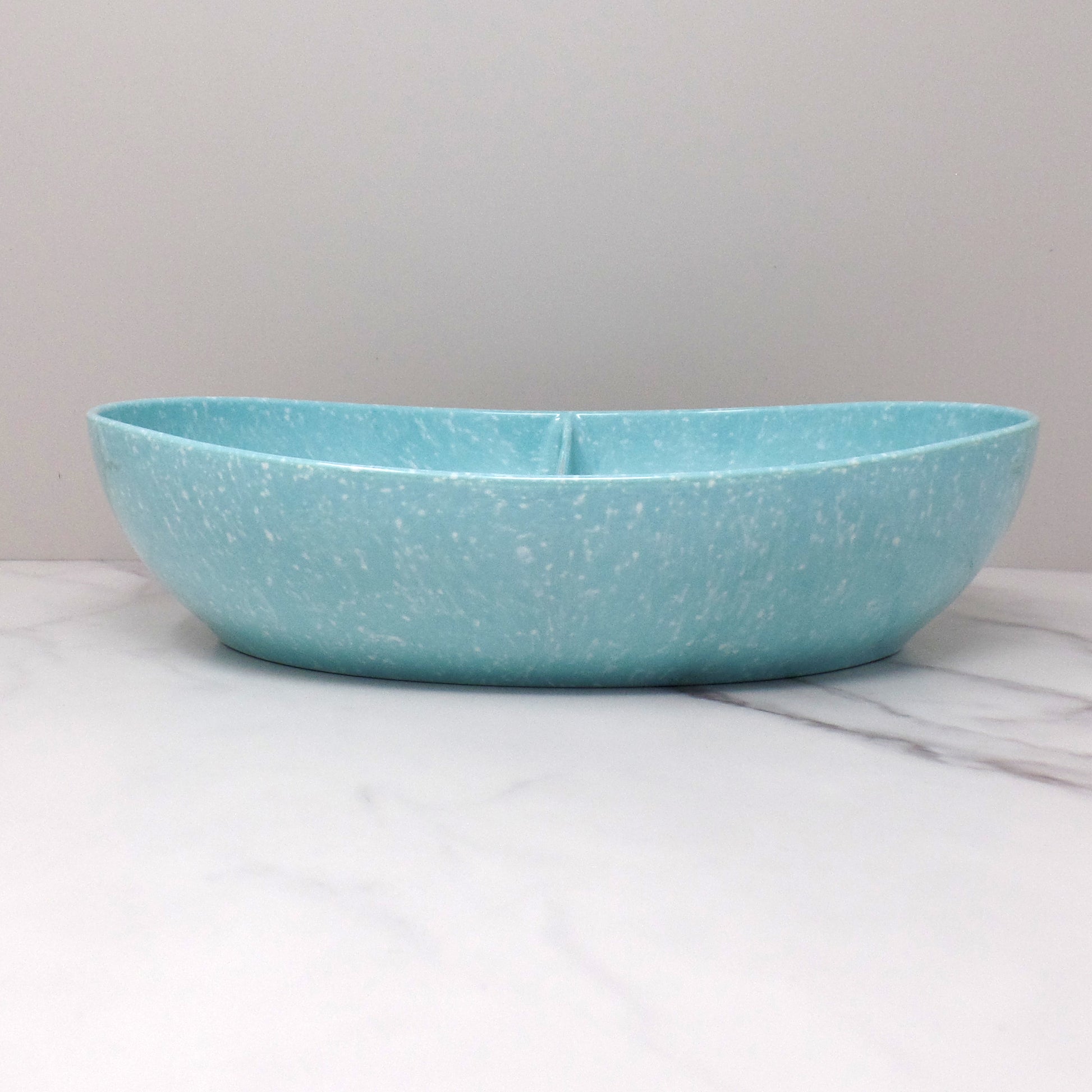 Vintage Joan Luntz Gaiety Melmac / Melamine Oval Divided Serving Bowl, Speckled Turquoise (1950s)