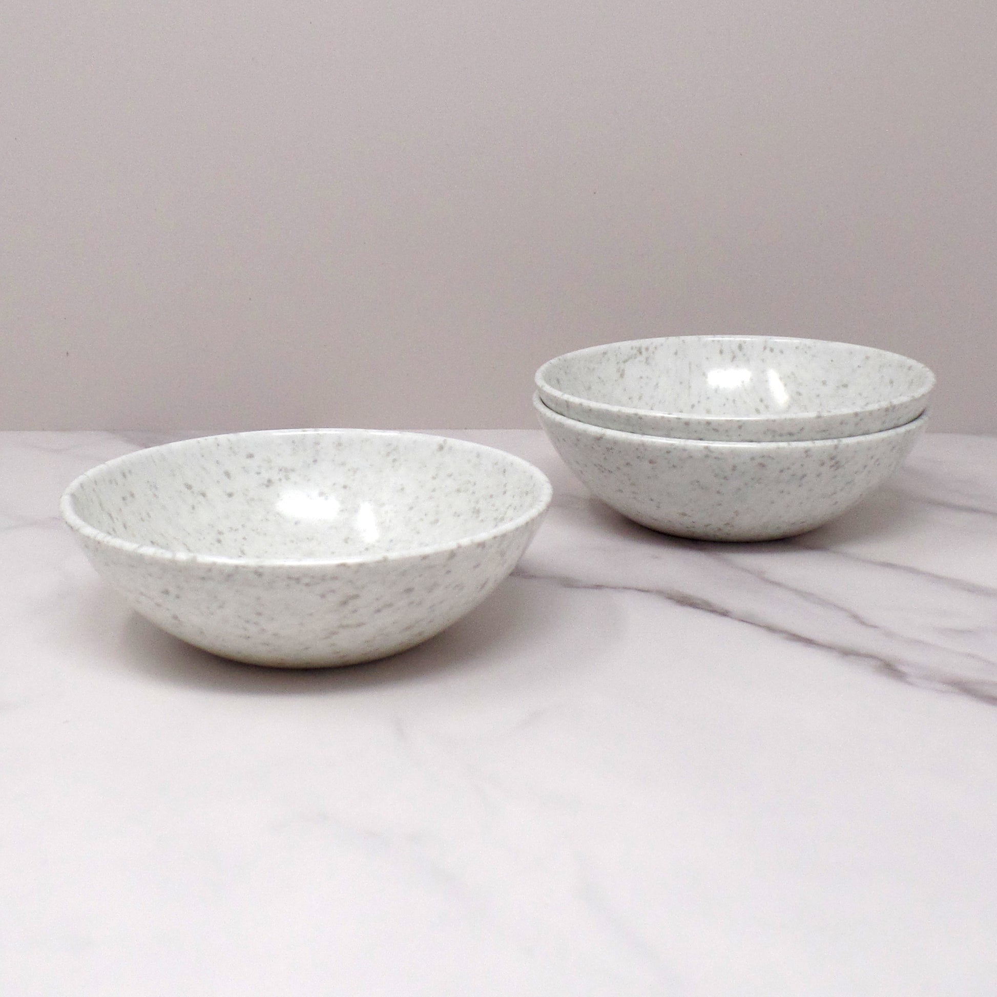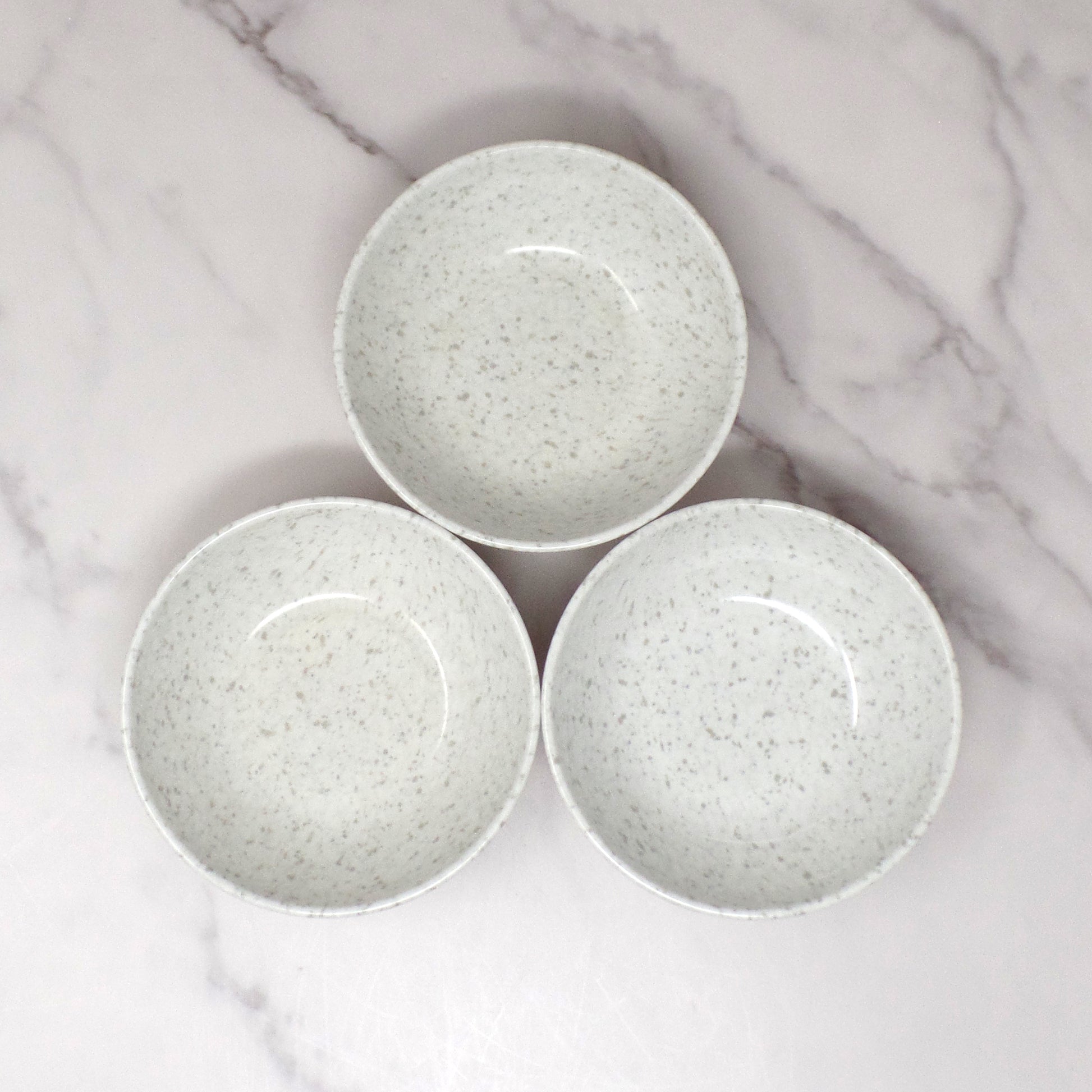 Vintage Joan Luntz Gaiety Melmac / Melamine 4-3/4” Bowl, Speckled Gray and White - set of 3 (1950s)