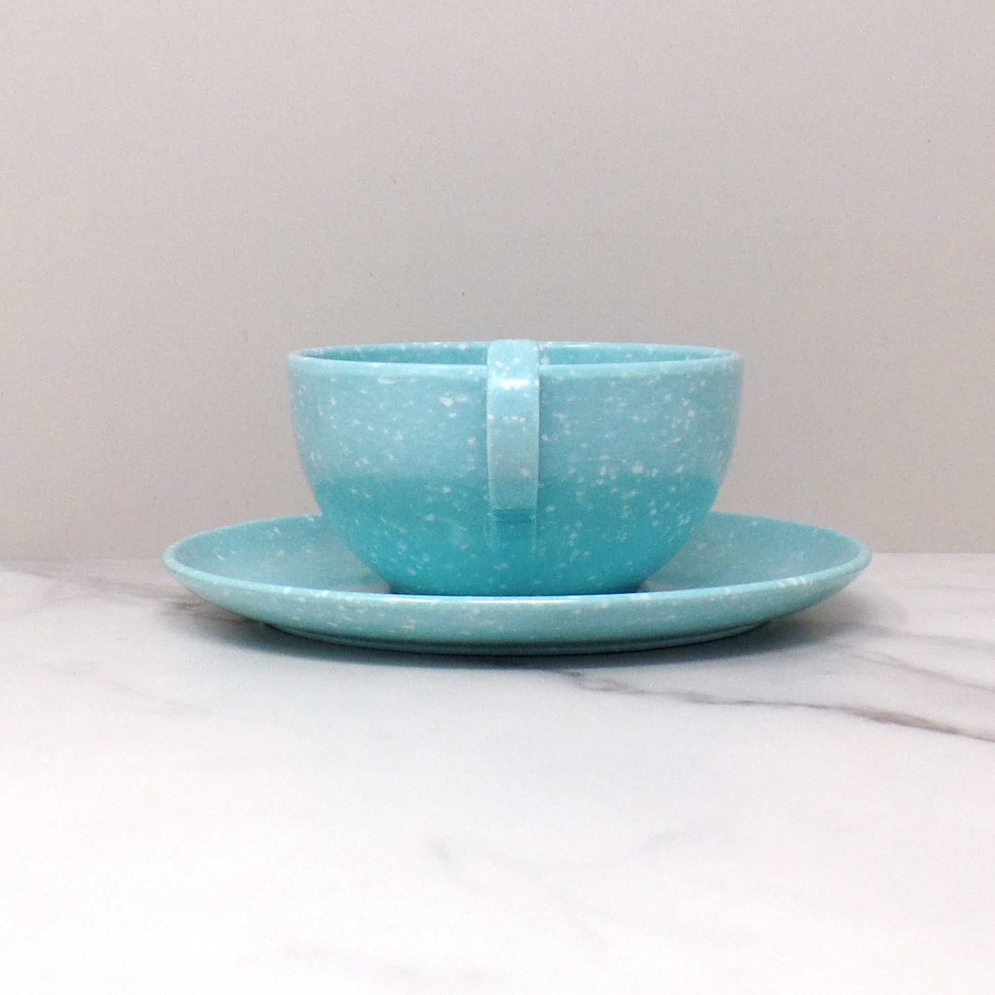 Vintage Joan Luntz Gaiety Melmac / Melamine Cup and Saucer, Speckled Turquoise (1950s)