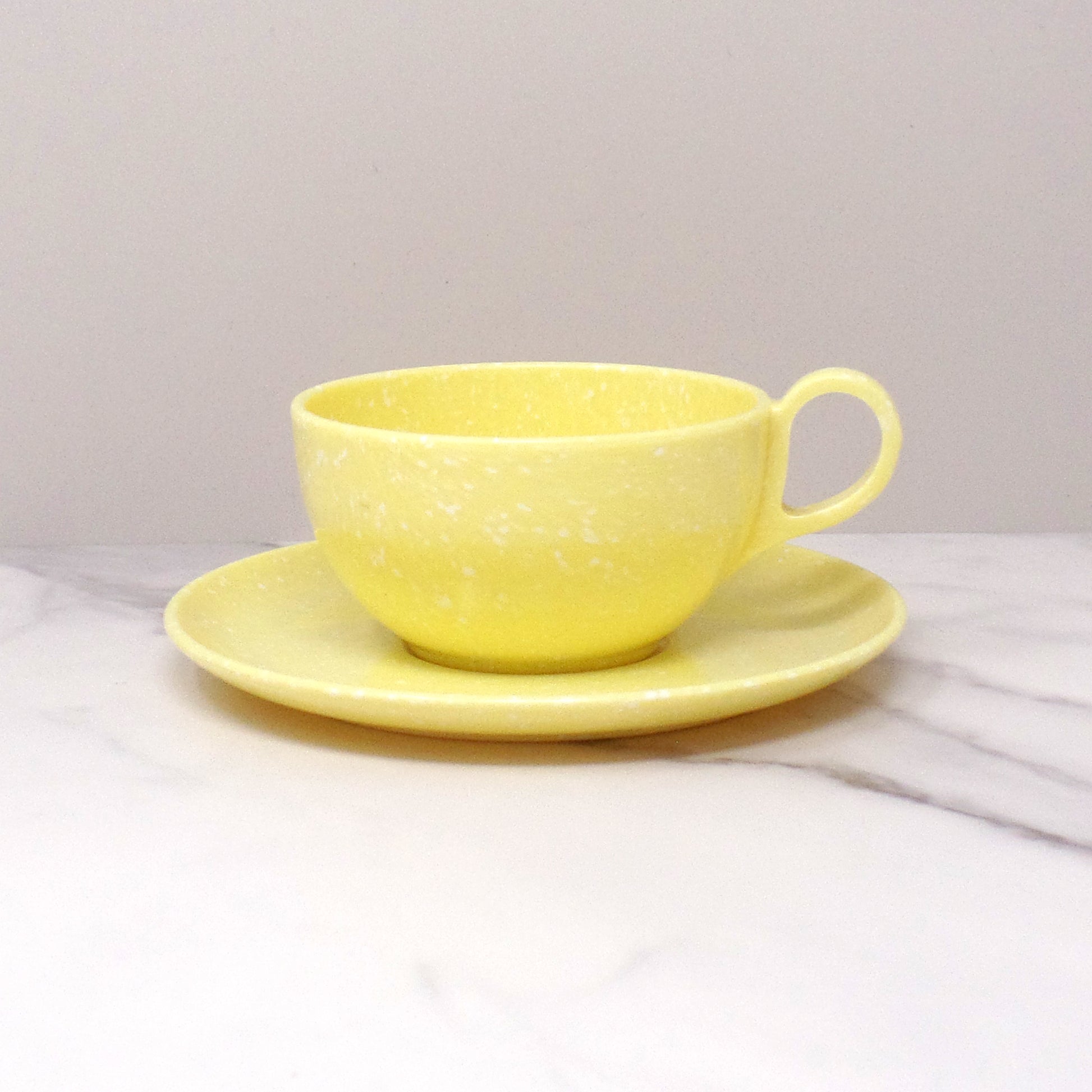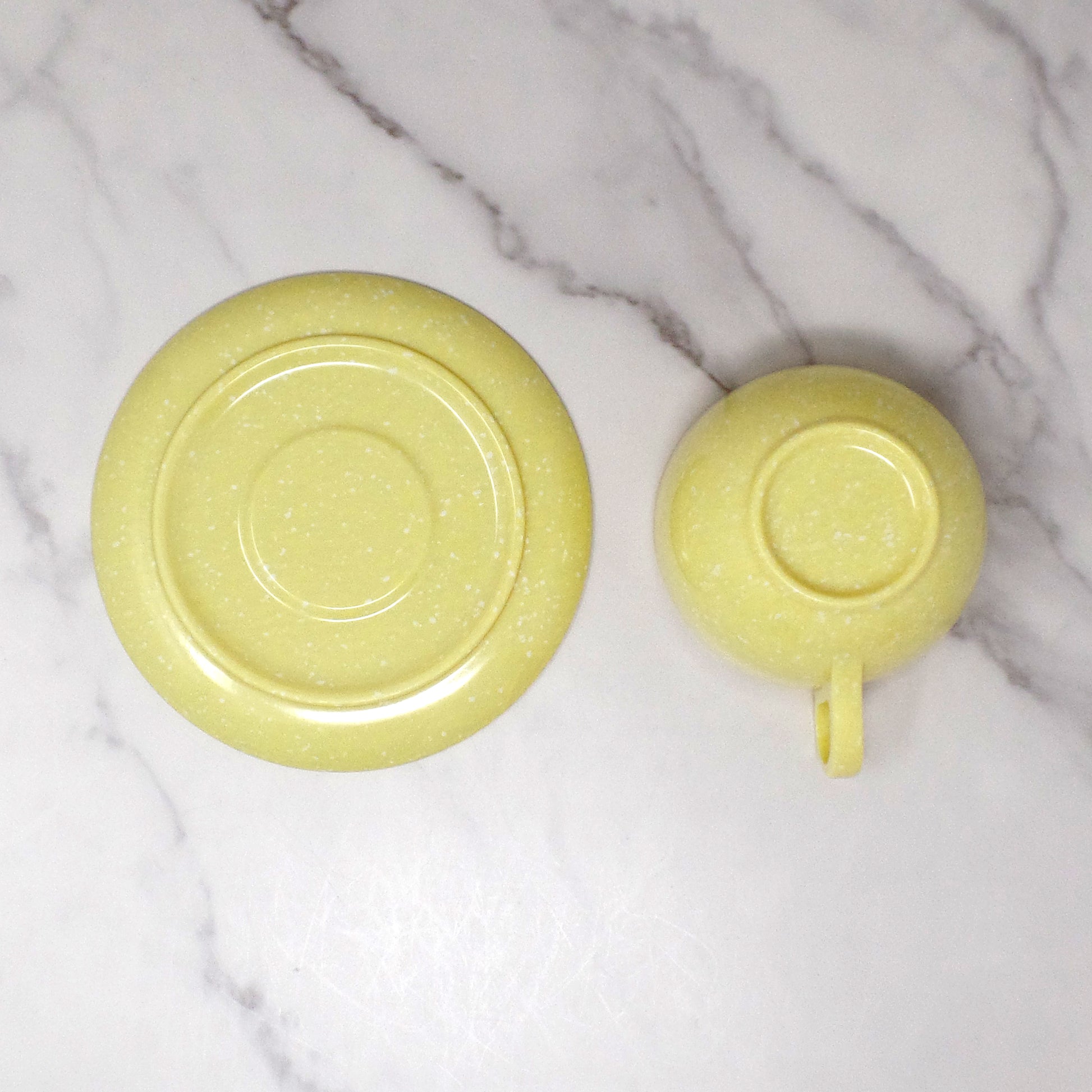 Vintage Joan Luntz Gaiety Melmac / Melamine Cup and Saucer, Speckled Yellow 1950s