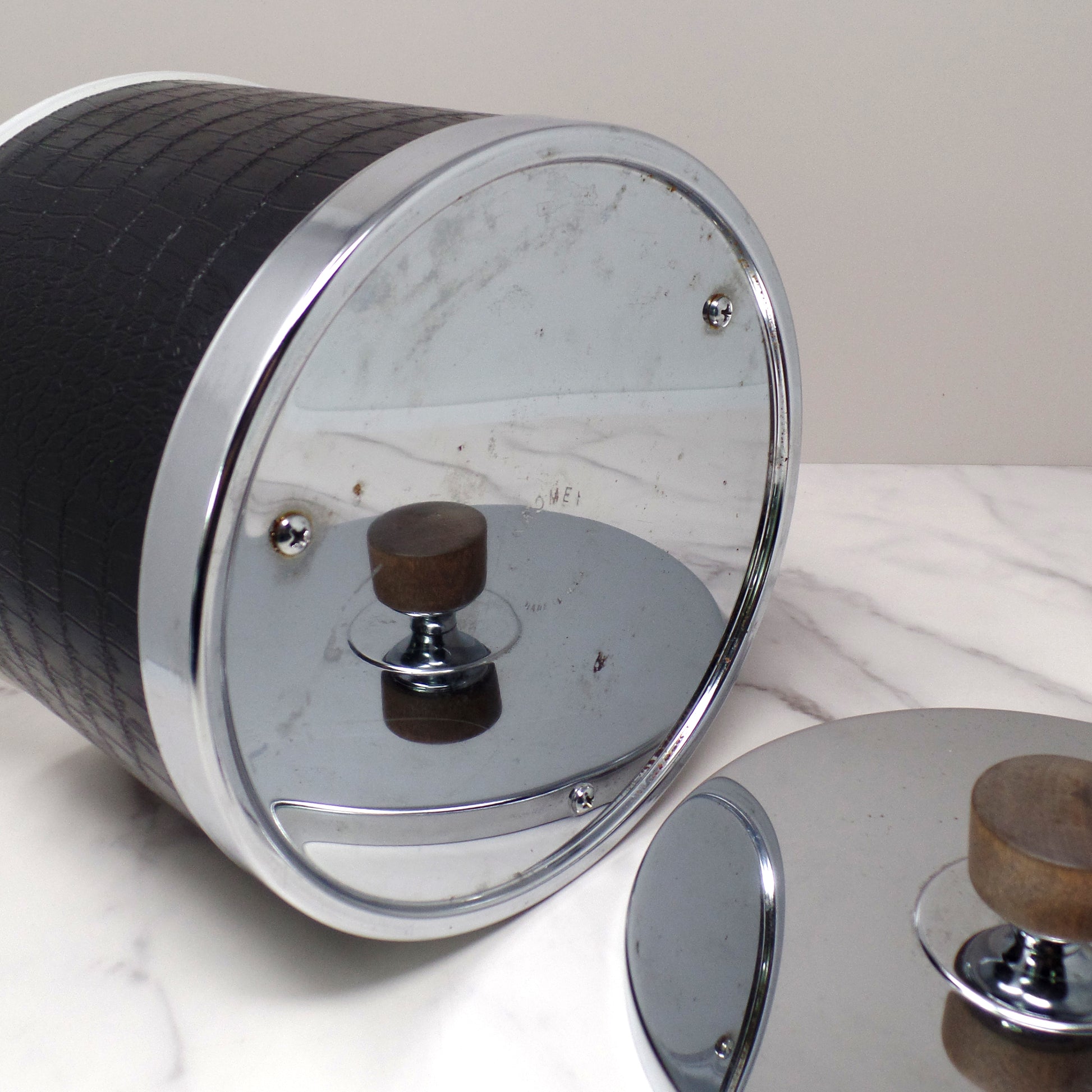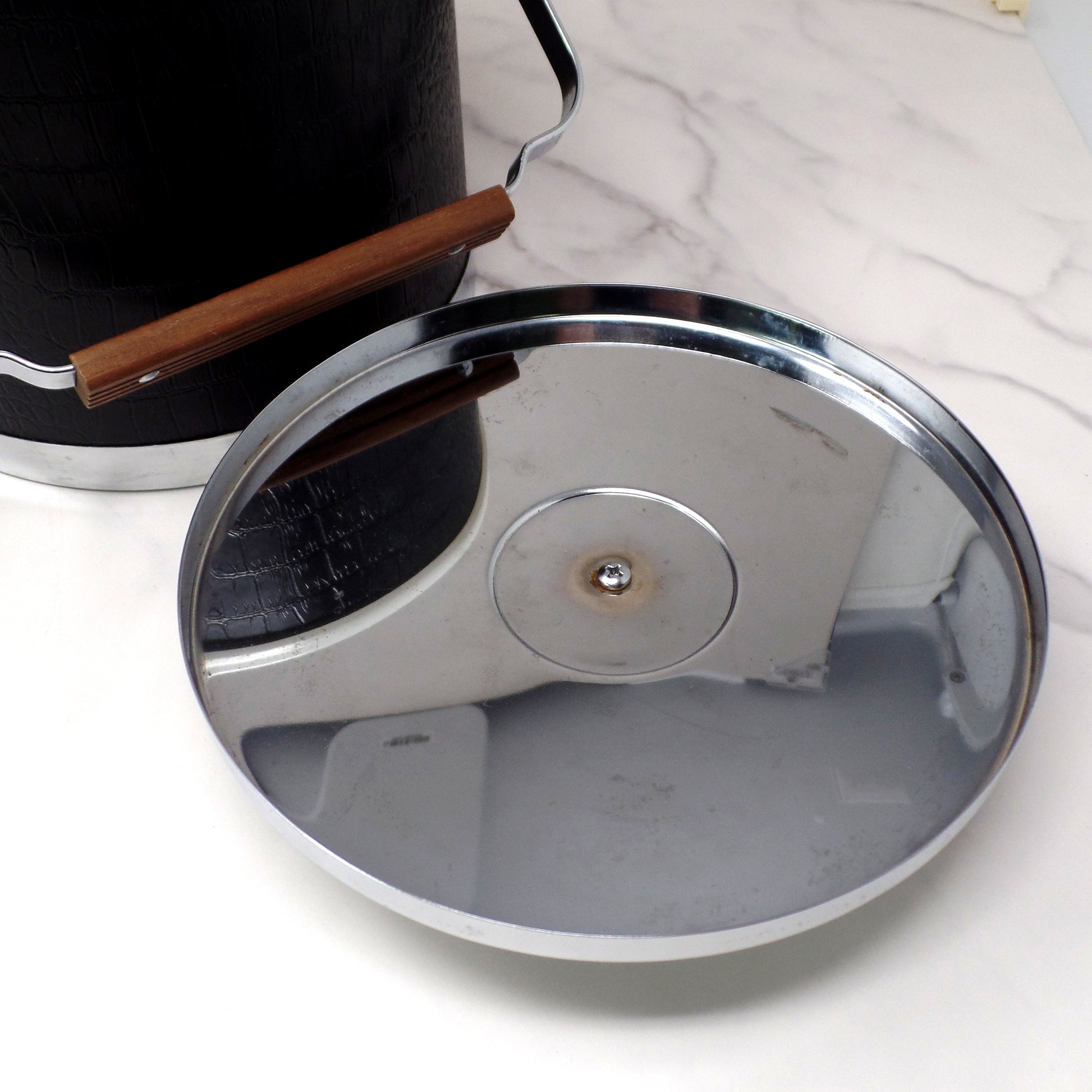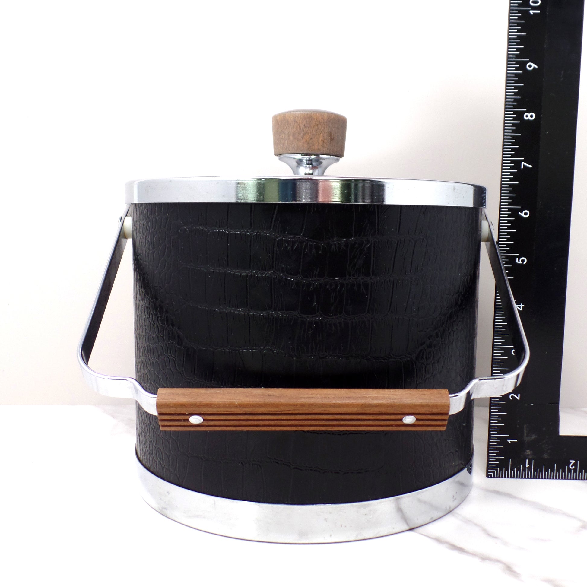 Vintage Kromex Faux Black Alligator Skin & Chrome Ice Bucket with Wood Handle and Knob (1960s)