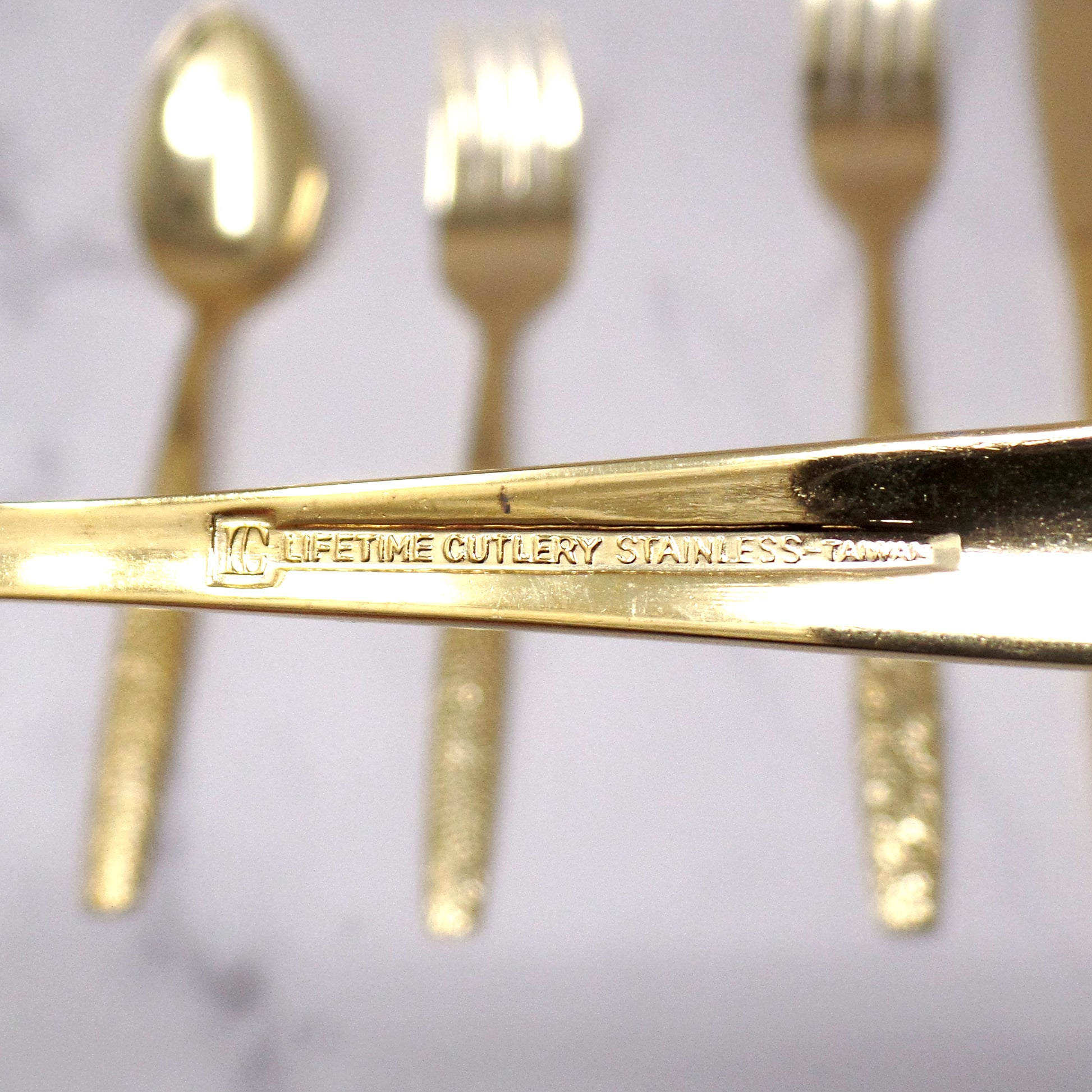 Vintage Lifetime Cutlery Gold Plated Stainless Steel Flatware, 50 Piece Service for 8 (1970s)
