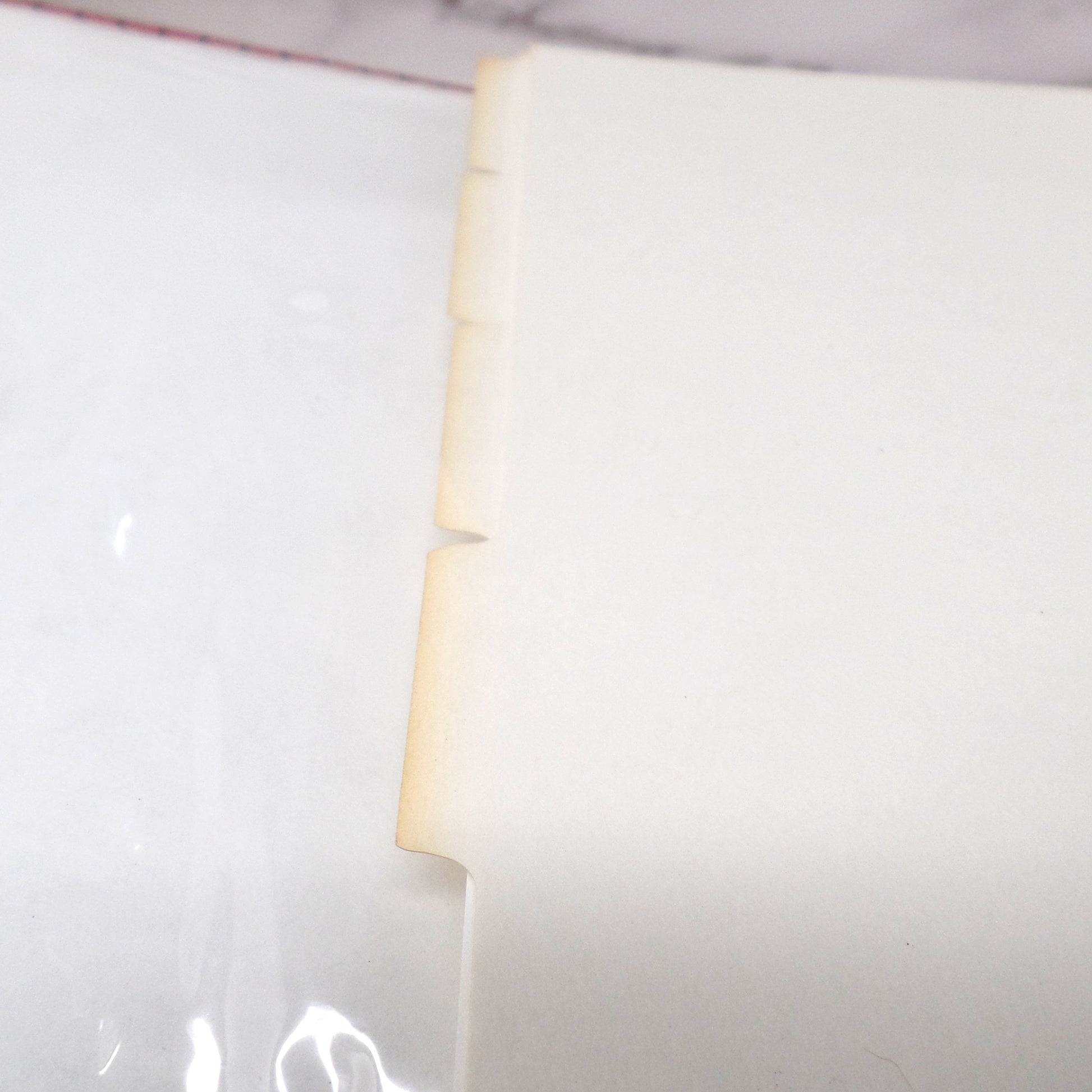 Good vintage condition: Unused, still in original shrink wrap packaging with blank cards. The cardstock tabs on the divider edges have yellowing from age (see detail photos).