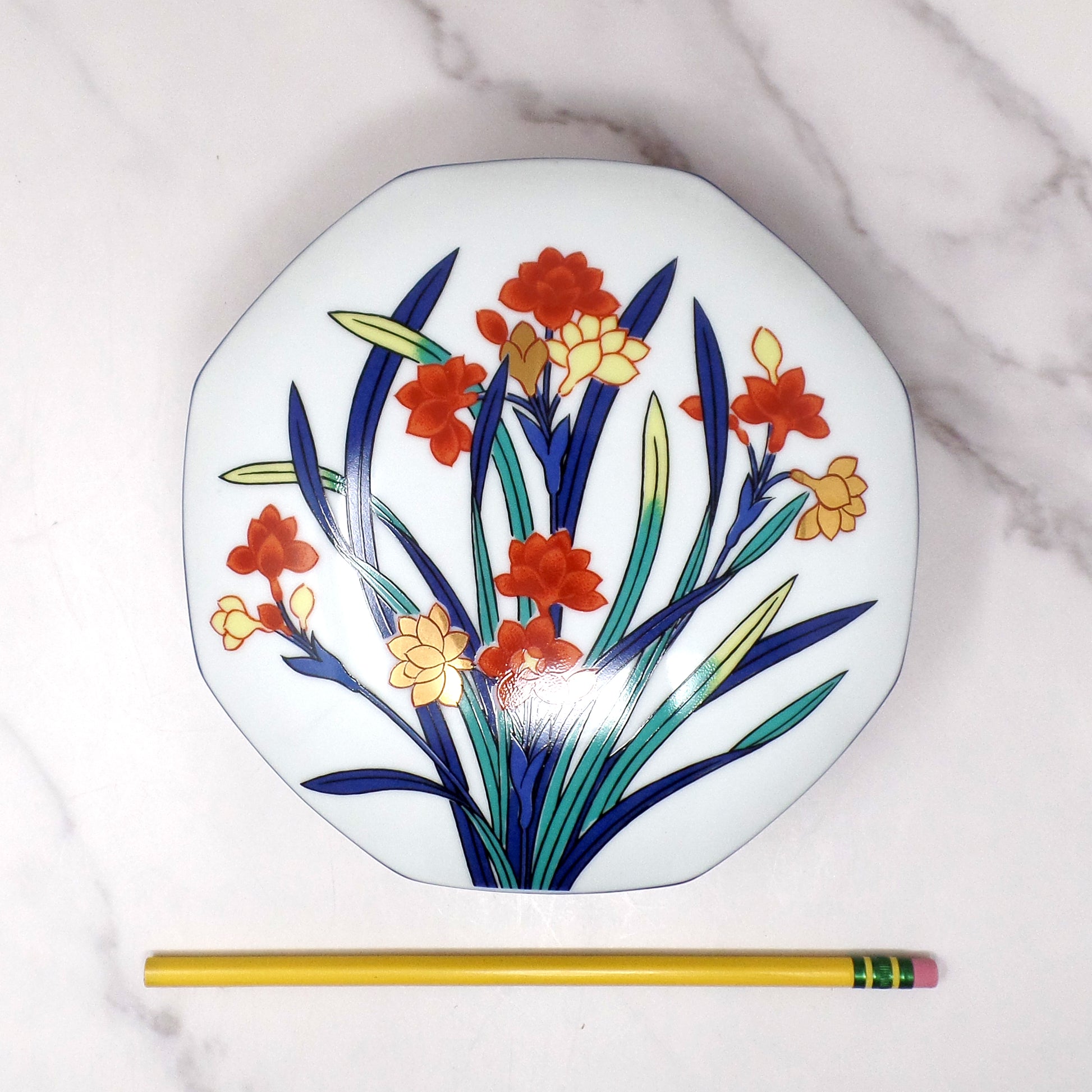 Vintage Tiffany & Co. Porcelain Covered Octagonal Trinket Box, Freesia Flowers (1970s)
