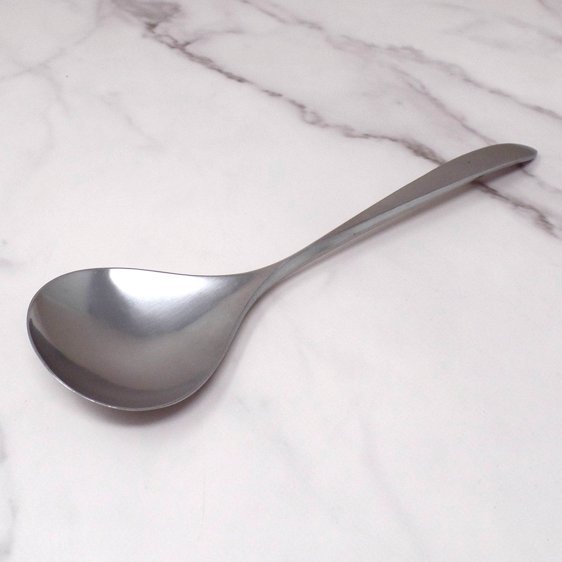 Vintage mid-century modern Wusthof Dreizack Pamir stainless steel serving ladle / spoon with satin finish. Made in Germany in the 1960s. In good vintage condition, there are various small scratches or scuffs from use.