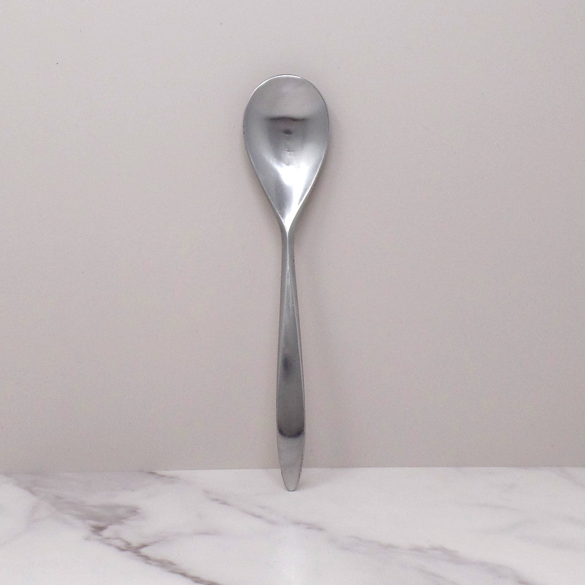 Vintage mid-century modern Wusthof Dreizack Pamir stainless steel soup / place spoon with satin finish. Made in Germany in the 1960s. In good vintage condition, there are various small scratches or scuffs from use.